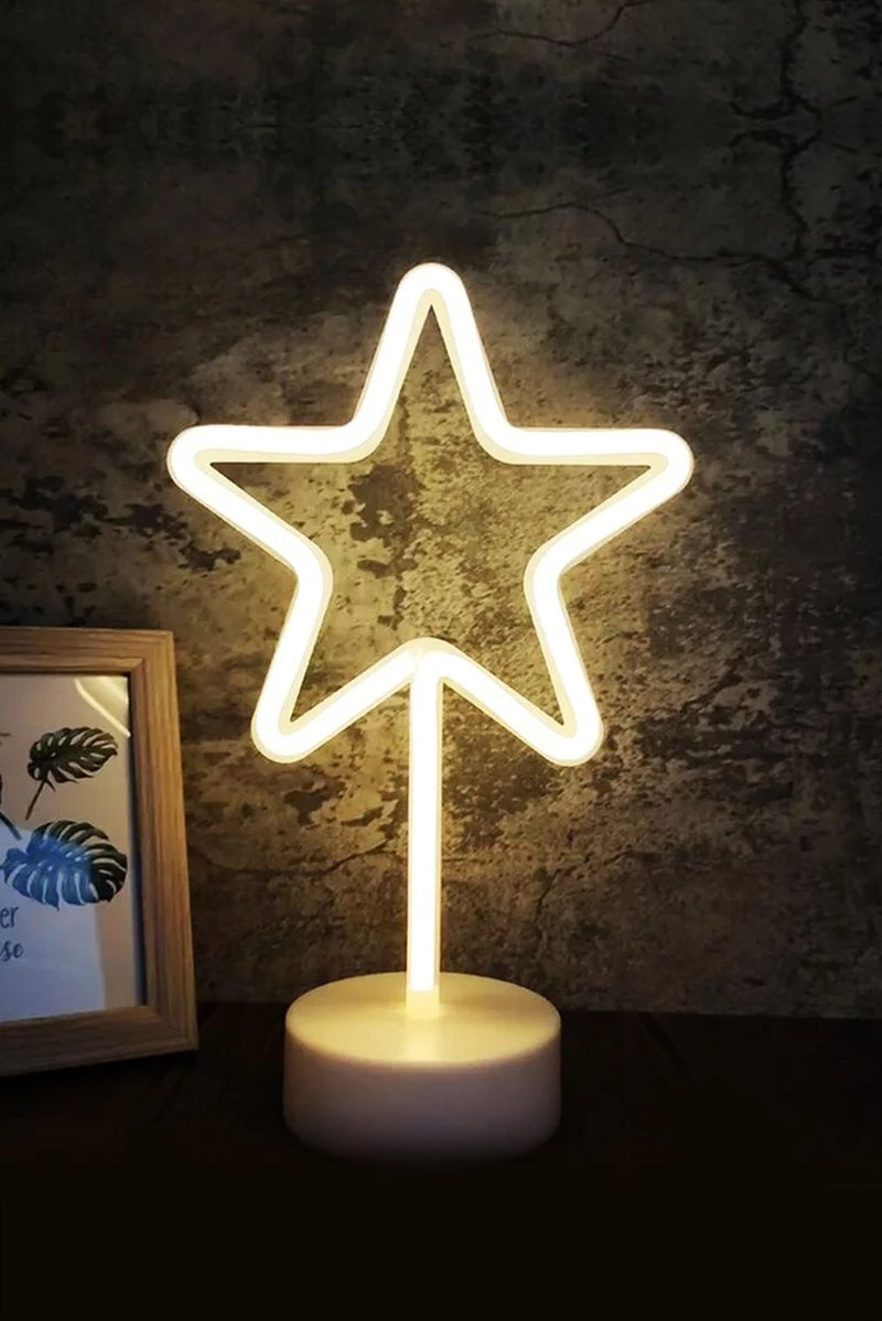 Neon Işıklı Yıldız Masa Gece Lambası Usb ve Pili