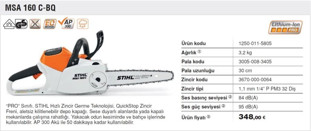 STİHL MSA 160 C-BQ AKÜLÜ TESTERE - AKÜ VE ŞARJ CİHAZI DAHİLDİR