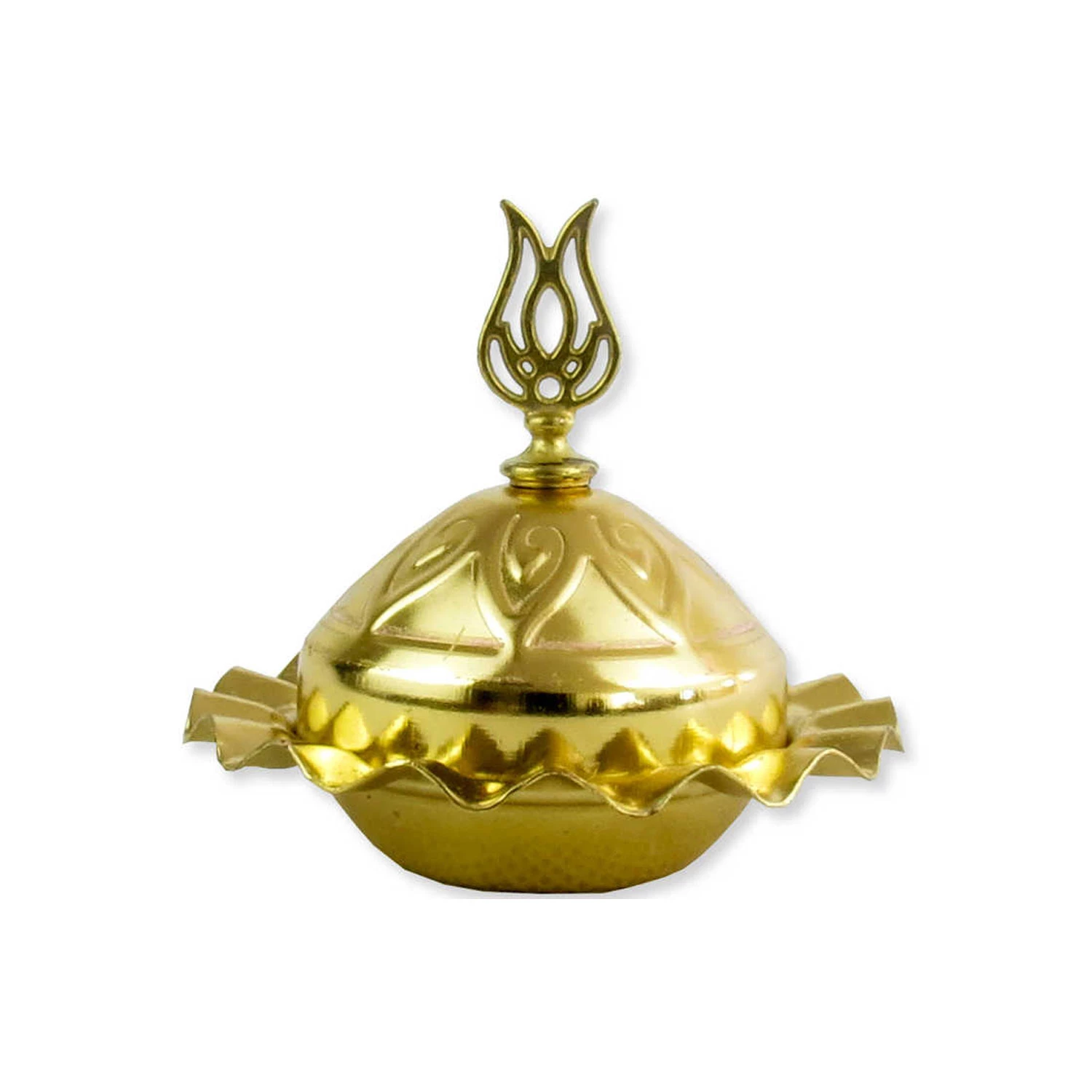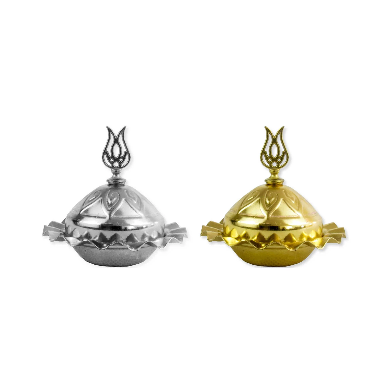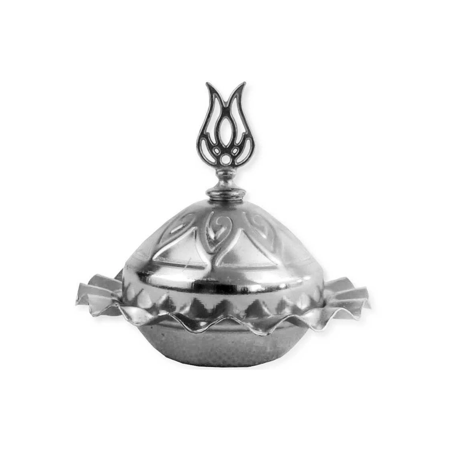 Metal Lokumluk Yuvarlak Fırfırlı Kapağında Lale Modelli (20 Adet) Gümüş