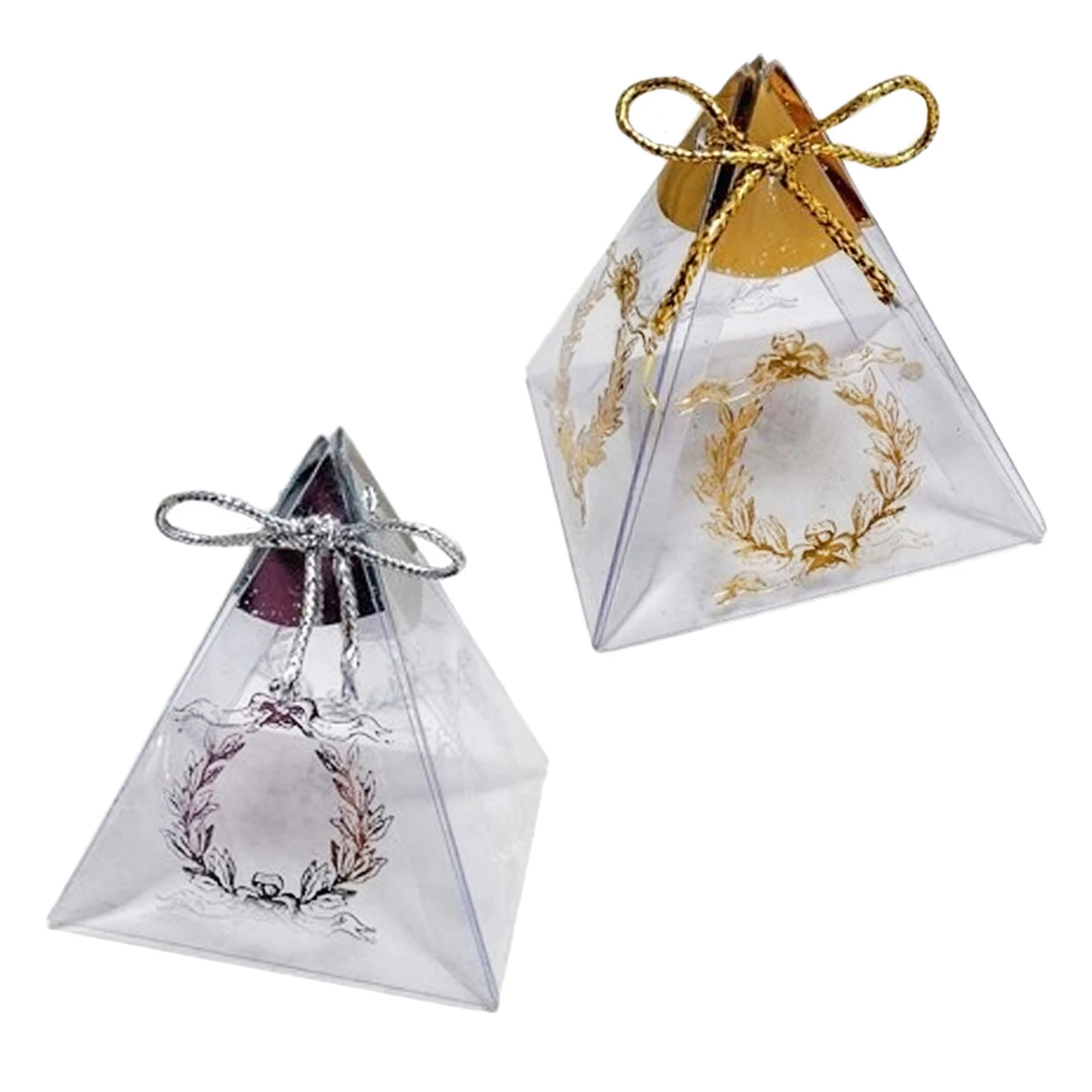 Needion - Piramit Asetat Kutu Üçgen Lokumluk Saray Desenli  6X6X6 (25 Adet) Gümüş