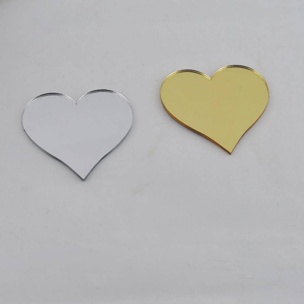 Pleksi Aynalı Kalp - Flexi Kalp 5X5 Cm Yapışkanlı Gümüş