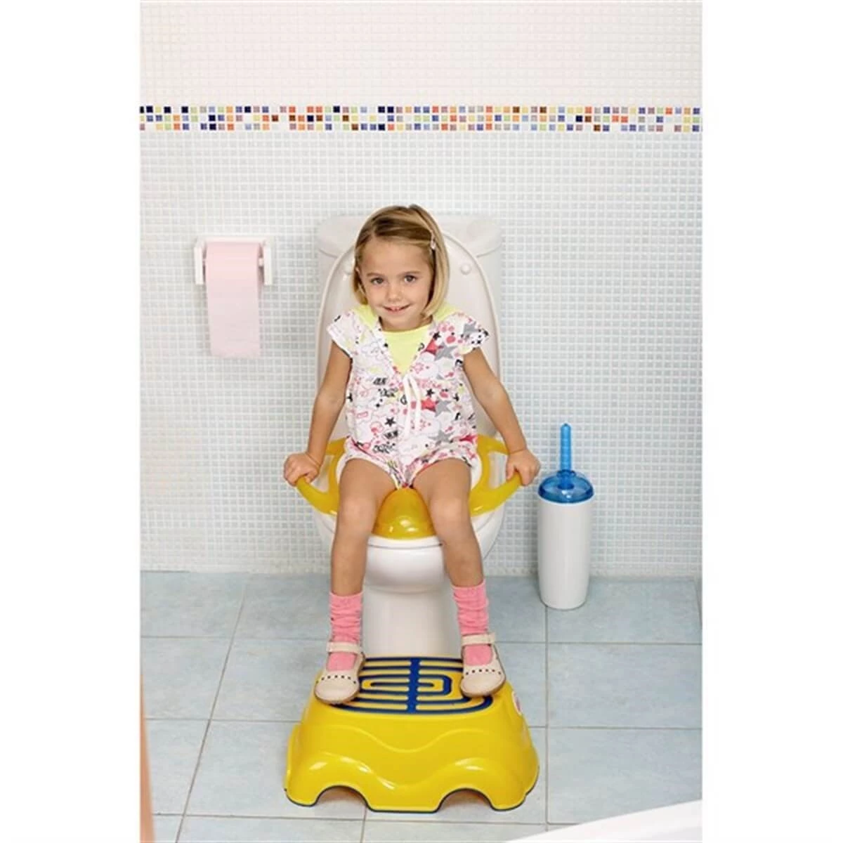 Konforlu yumuşak pedli klozet küçültücü. Yanlarda bulunan tutma sapları sayesinde minik parmakların kirli tuvalet ile temas etmesine artık gerek yok!