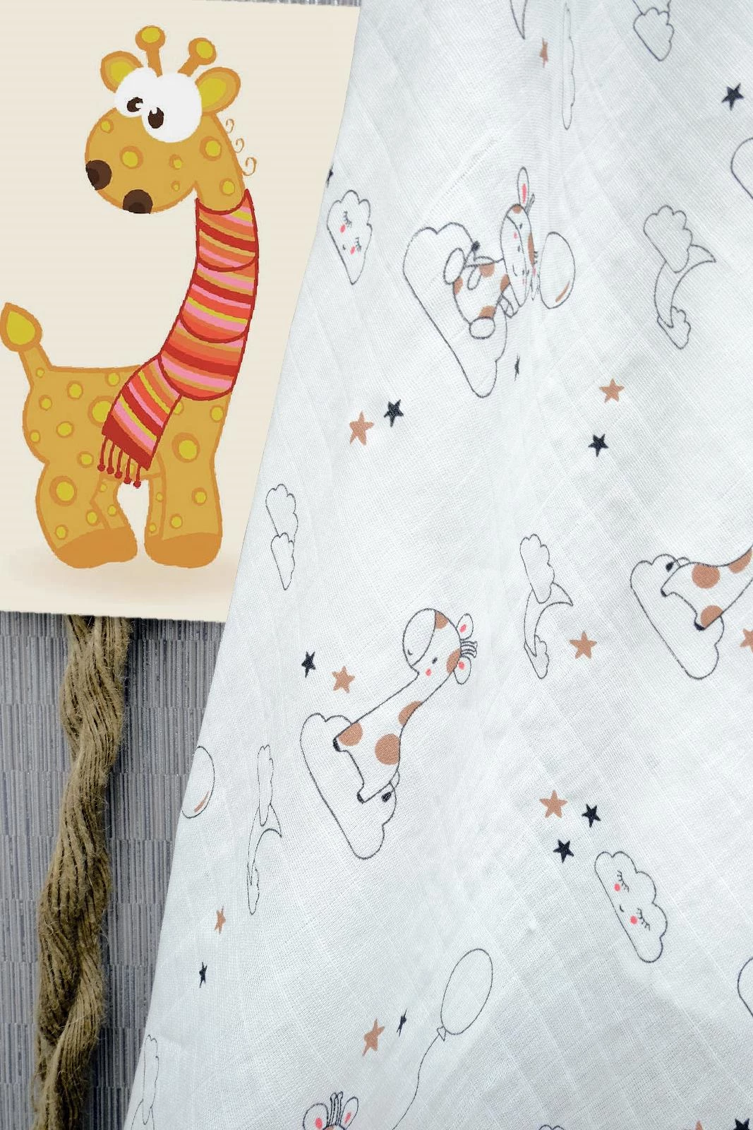 90x110 Karışık Hayvan Desenli Müslin Bebek Bezi