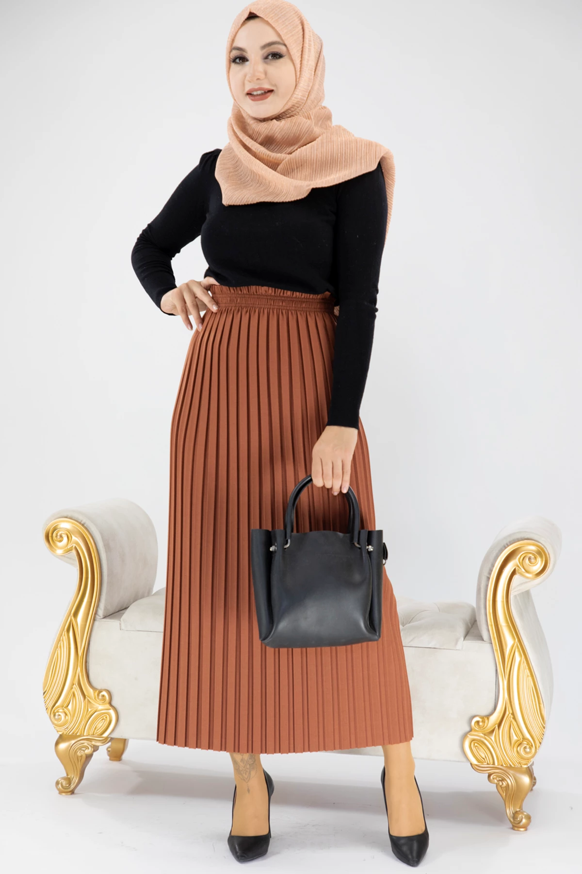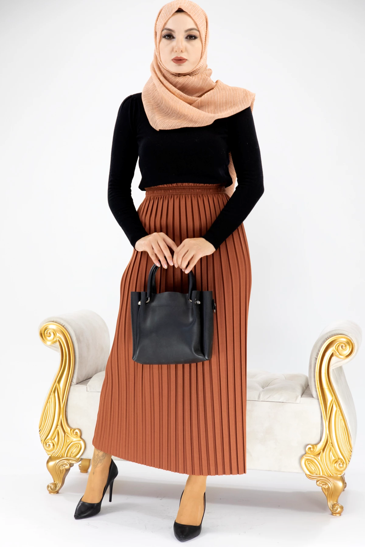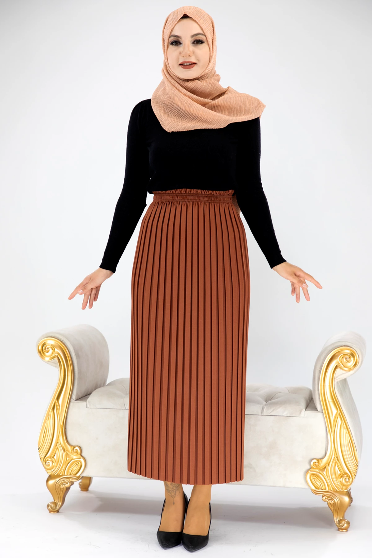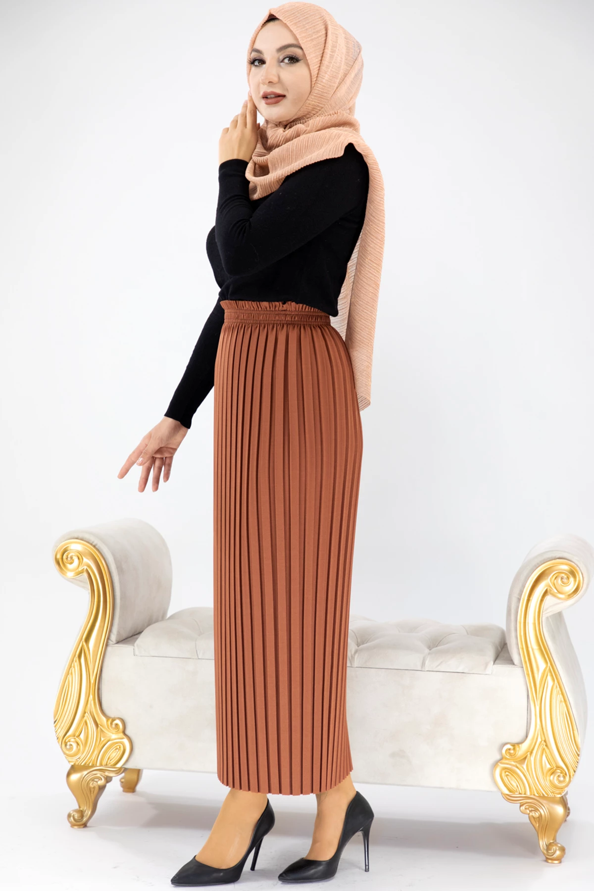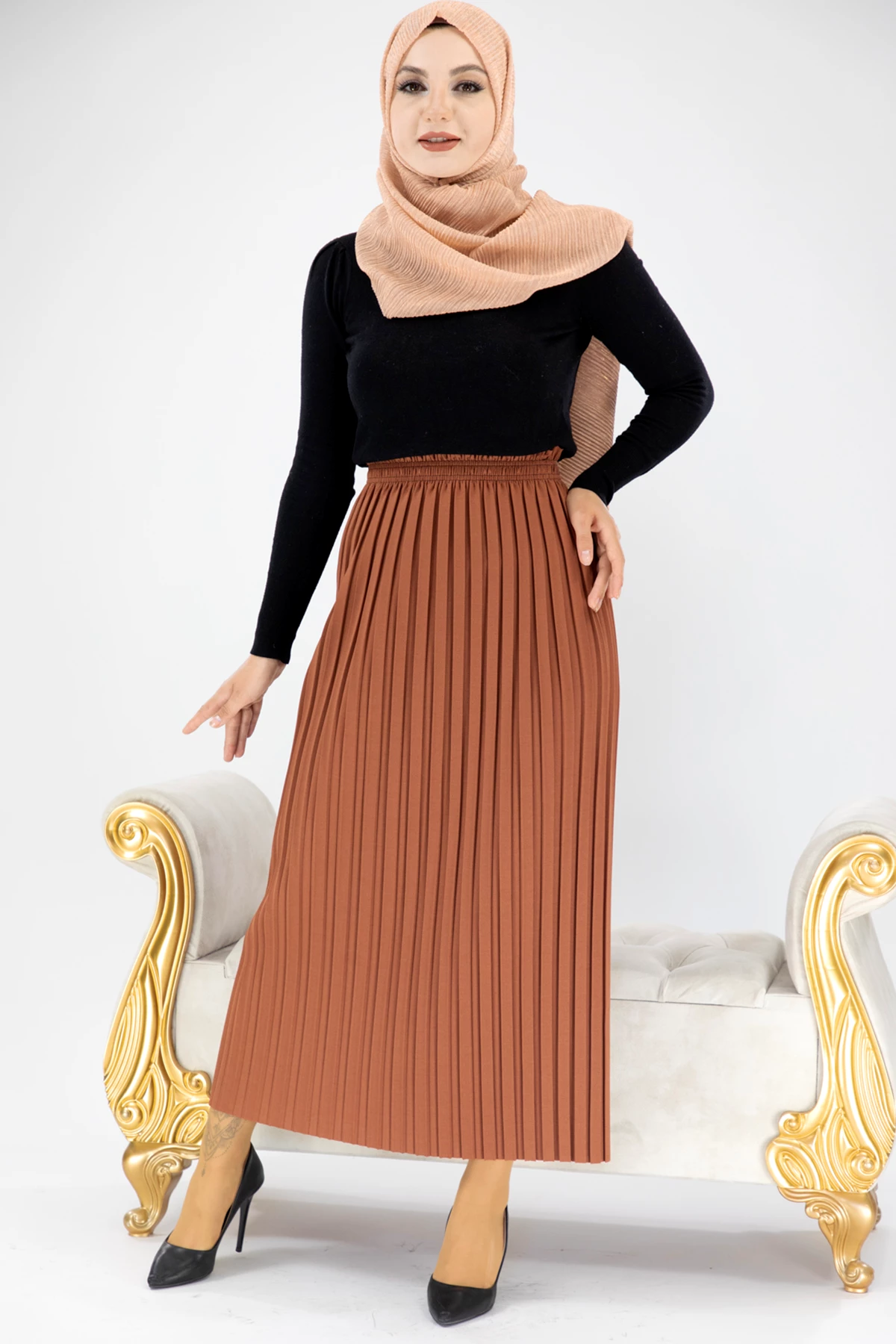 Akordiyon Model Tesettür Etek Kiremit Kiremit STD