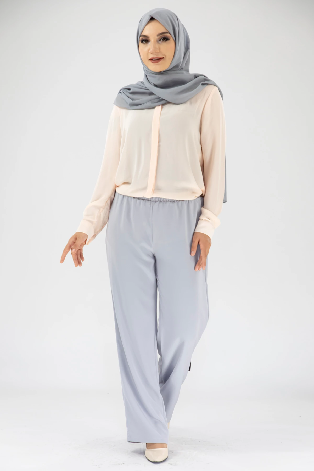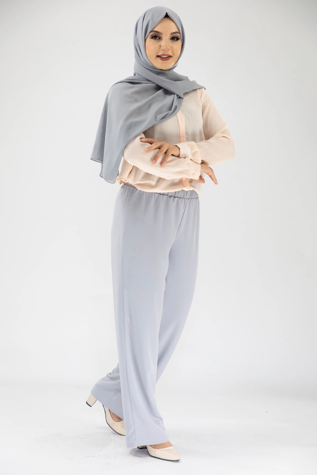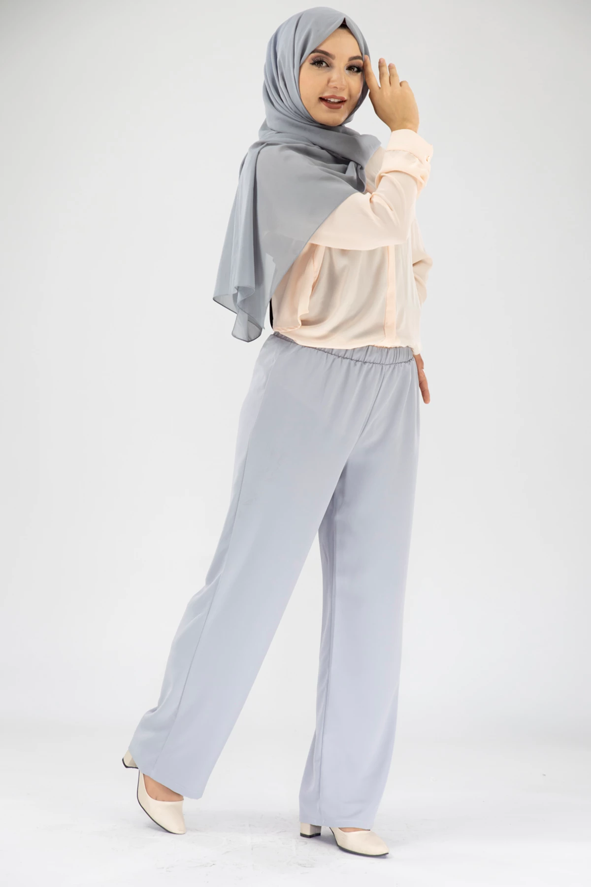 Beli Lastikli Dökümlü Pantolon Gri Gri 38