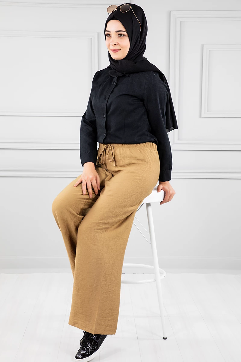 Ürünün beli lastikli olup ip detaylıdır.ahat ve esnek kumaş yapısı sayesinde günlük kullanıma uygundur.Bol paça ve salaş model olarak üretilmiştir.Ürün standart kalıptır.