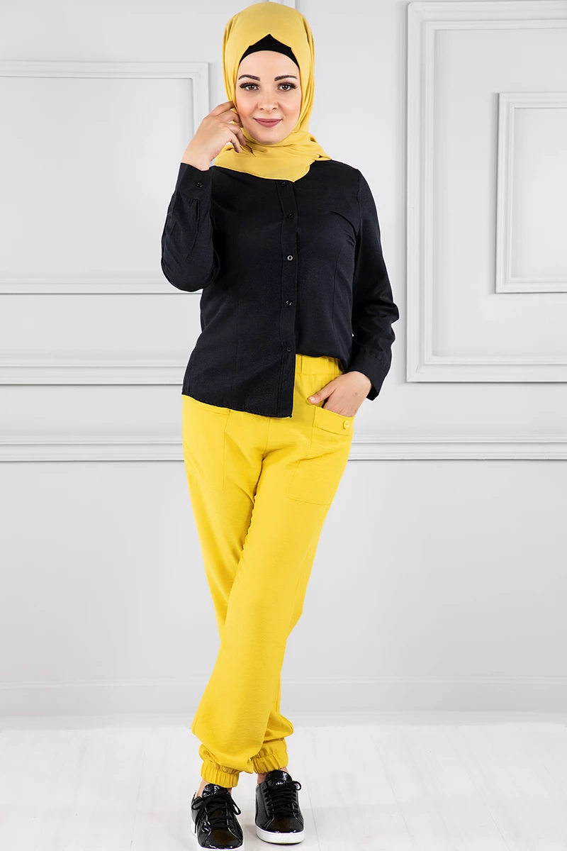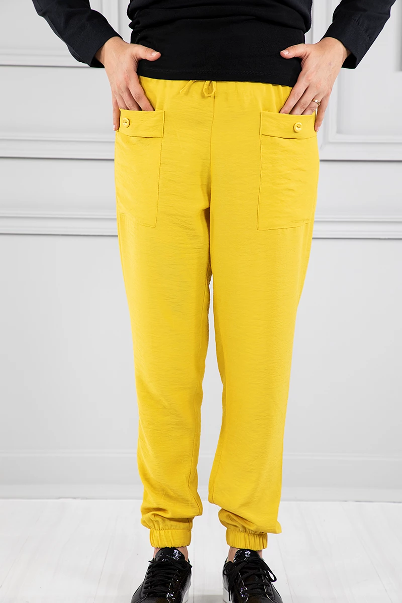 Paçaları Büzgülü Kargo Pantolon Sarı 38