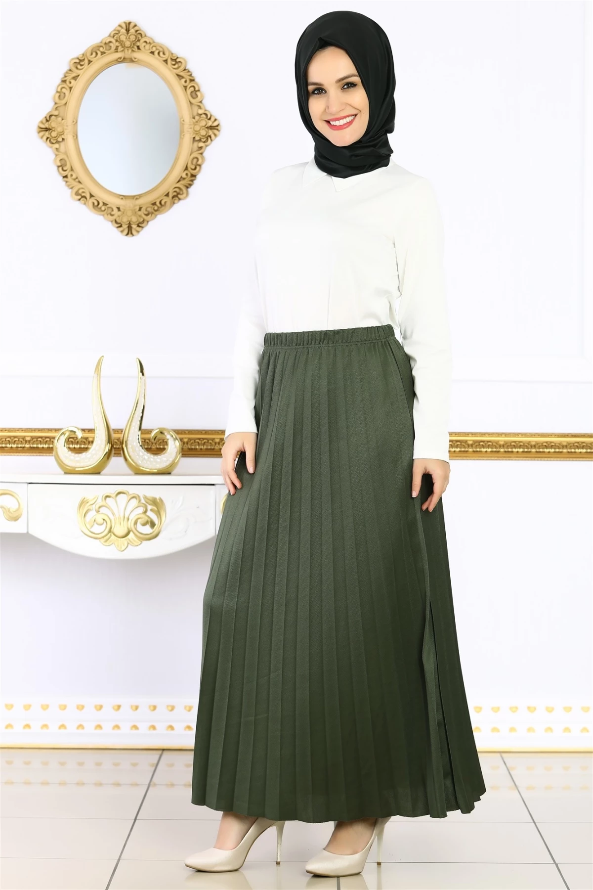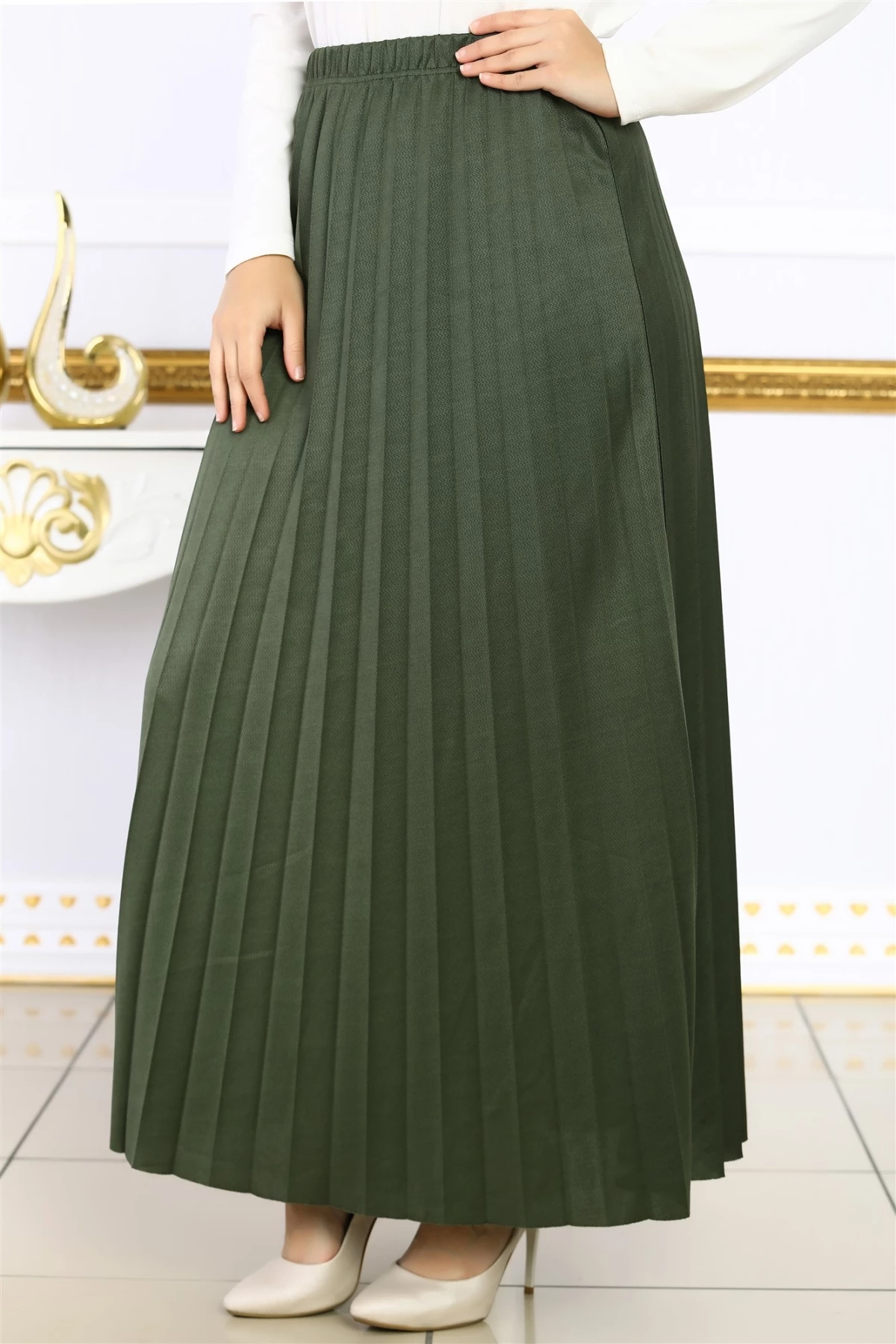 Needion - Piliseli Tesettür Mira Etek Haki STD(36-44)