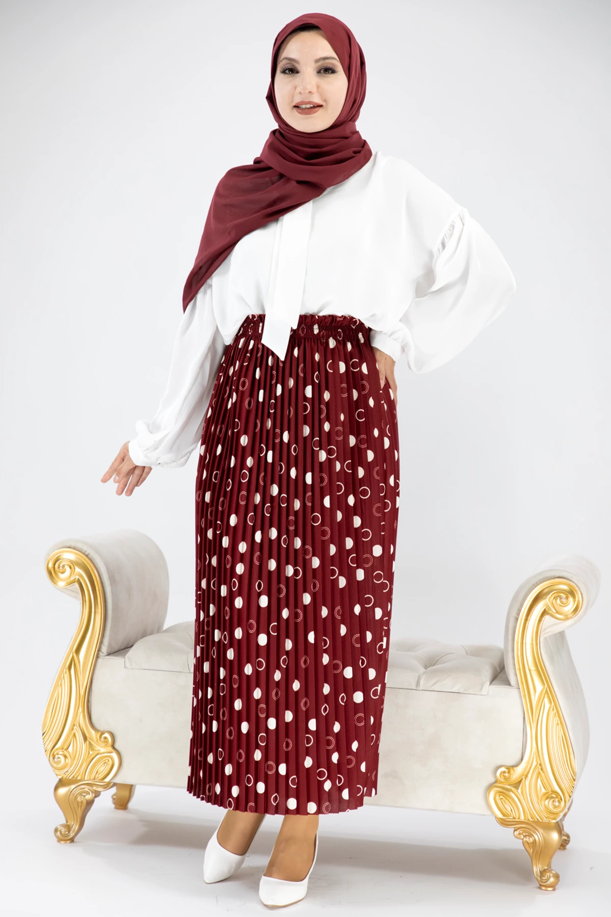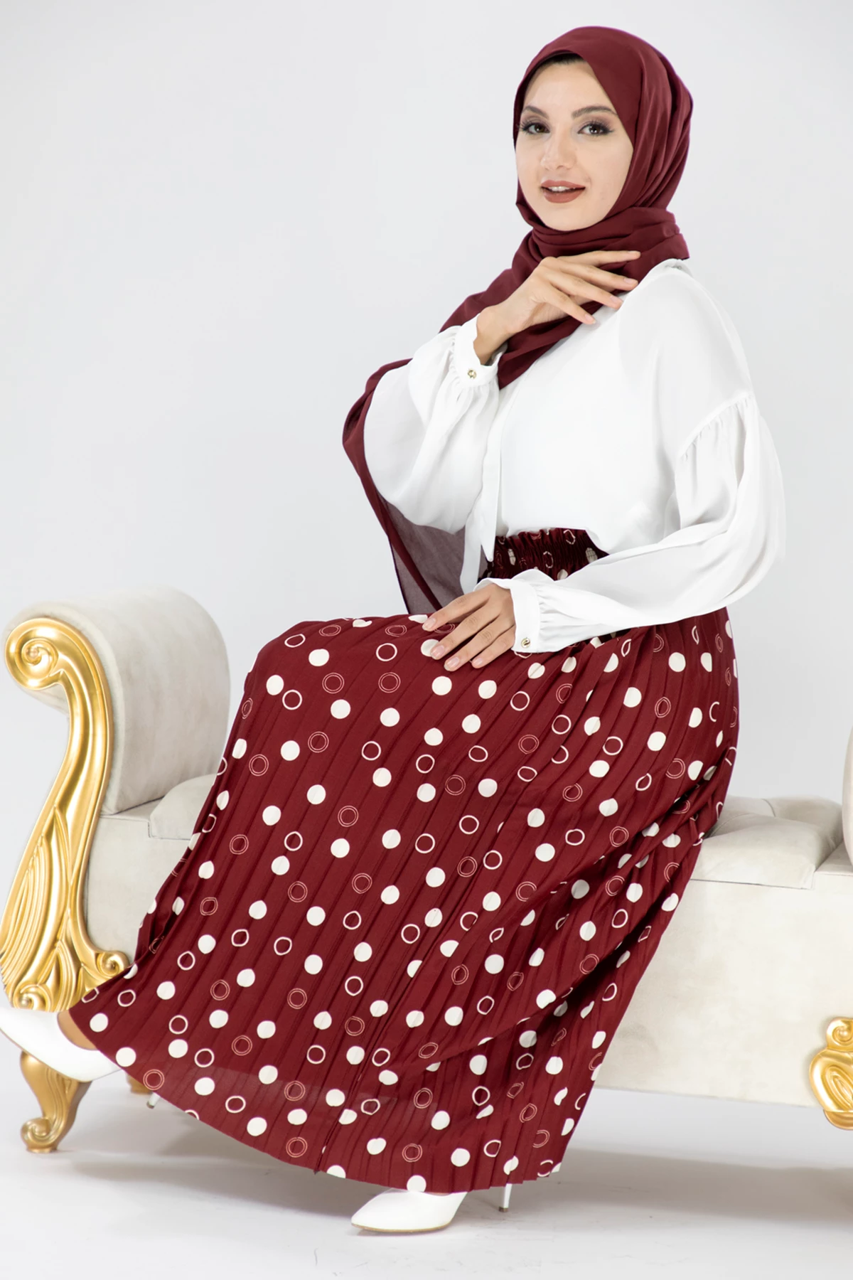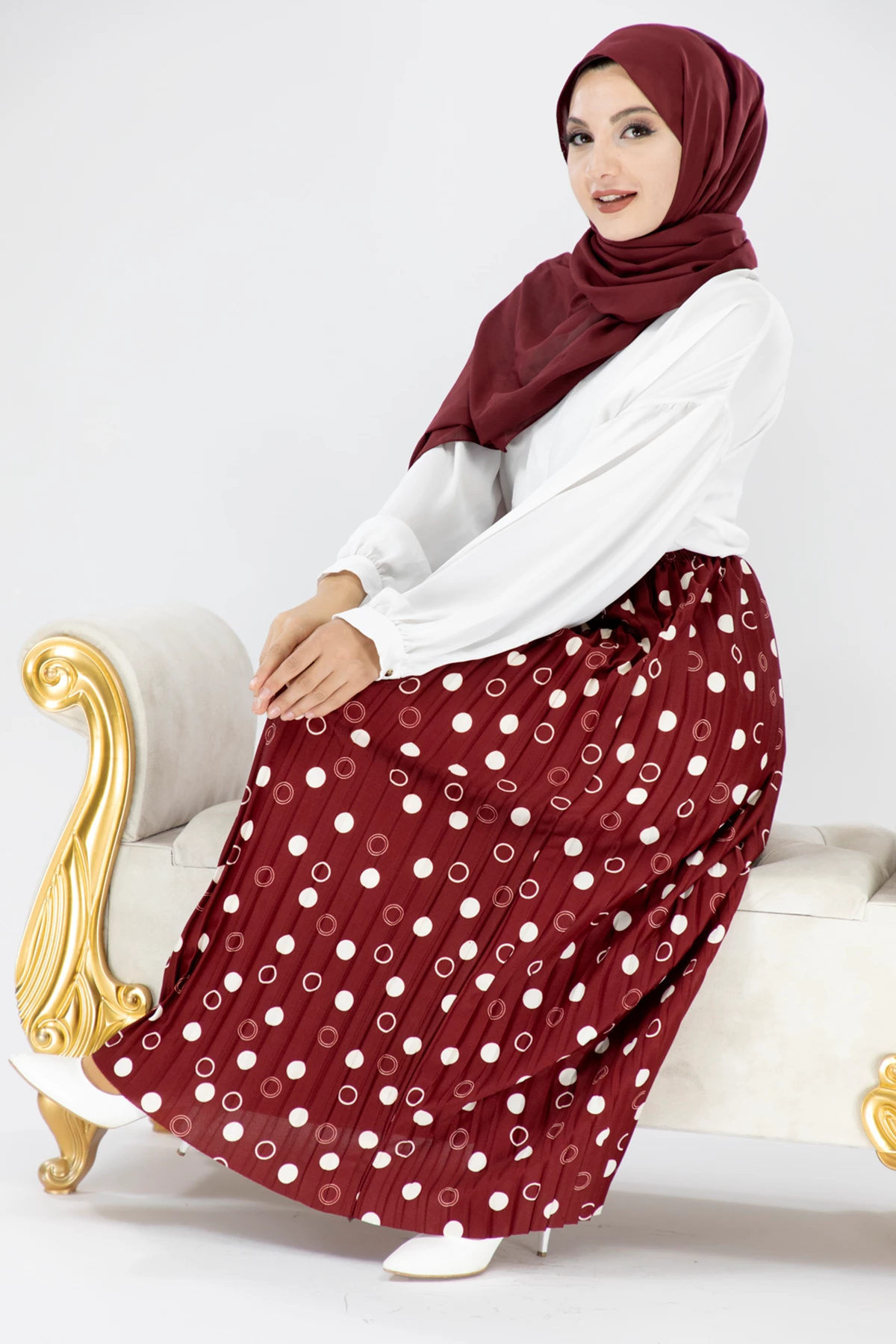 Puantiyeli Pileli Tesettür Etek Bordo Bordo STD