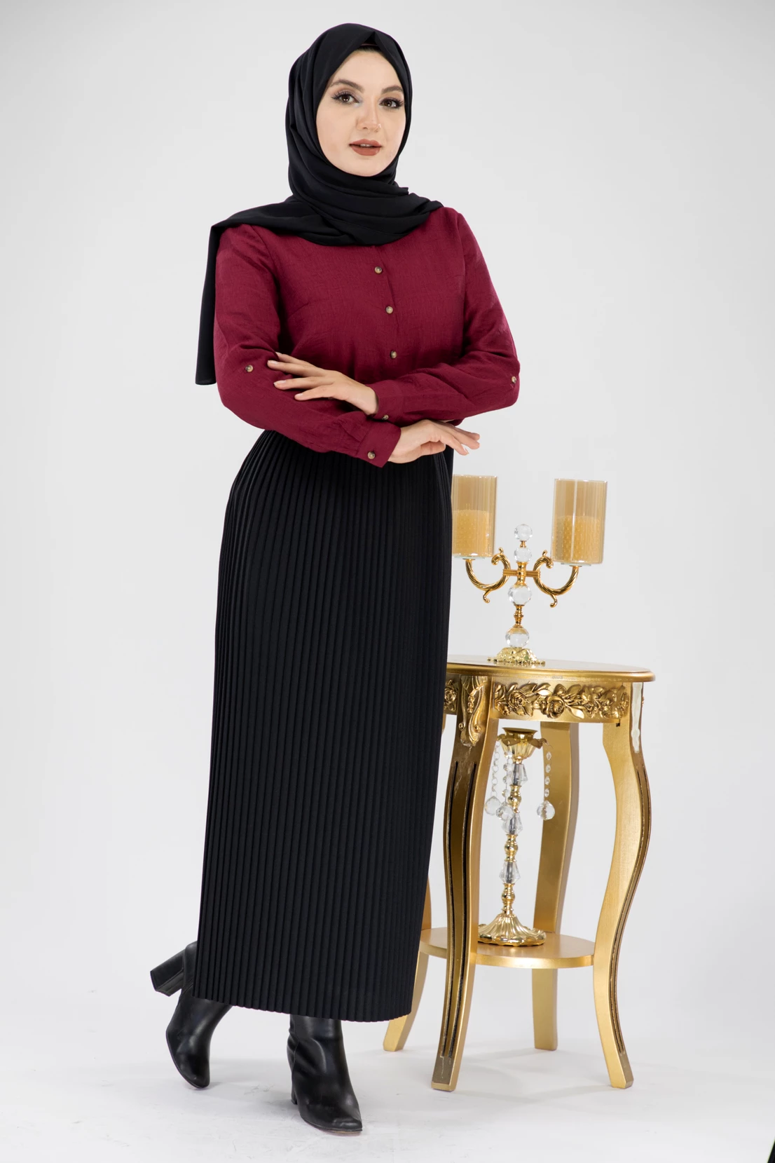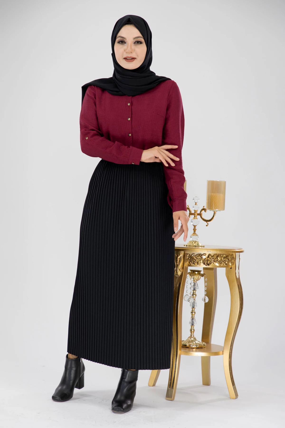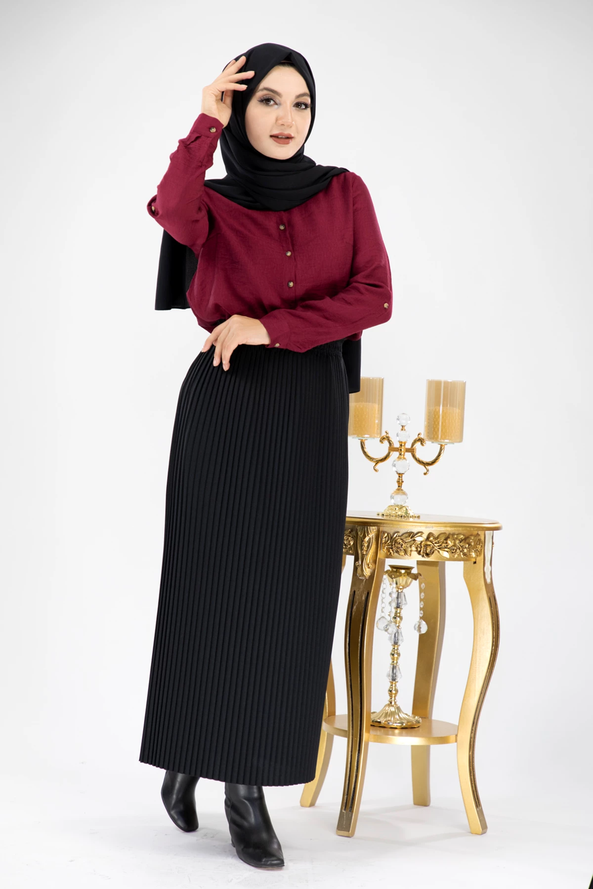 Sık Pileli Tesettür Etek Siyah Siyah STD