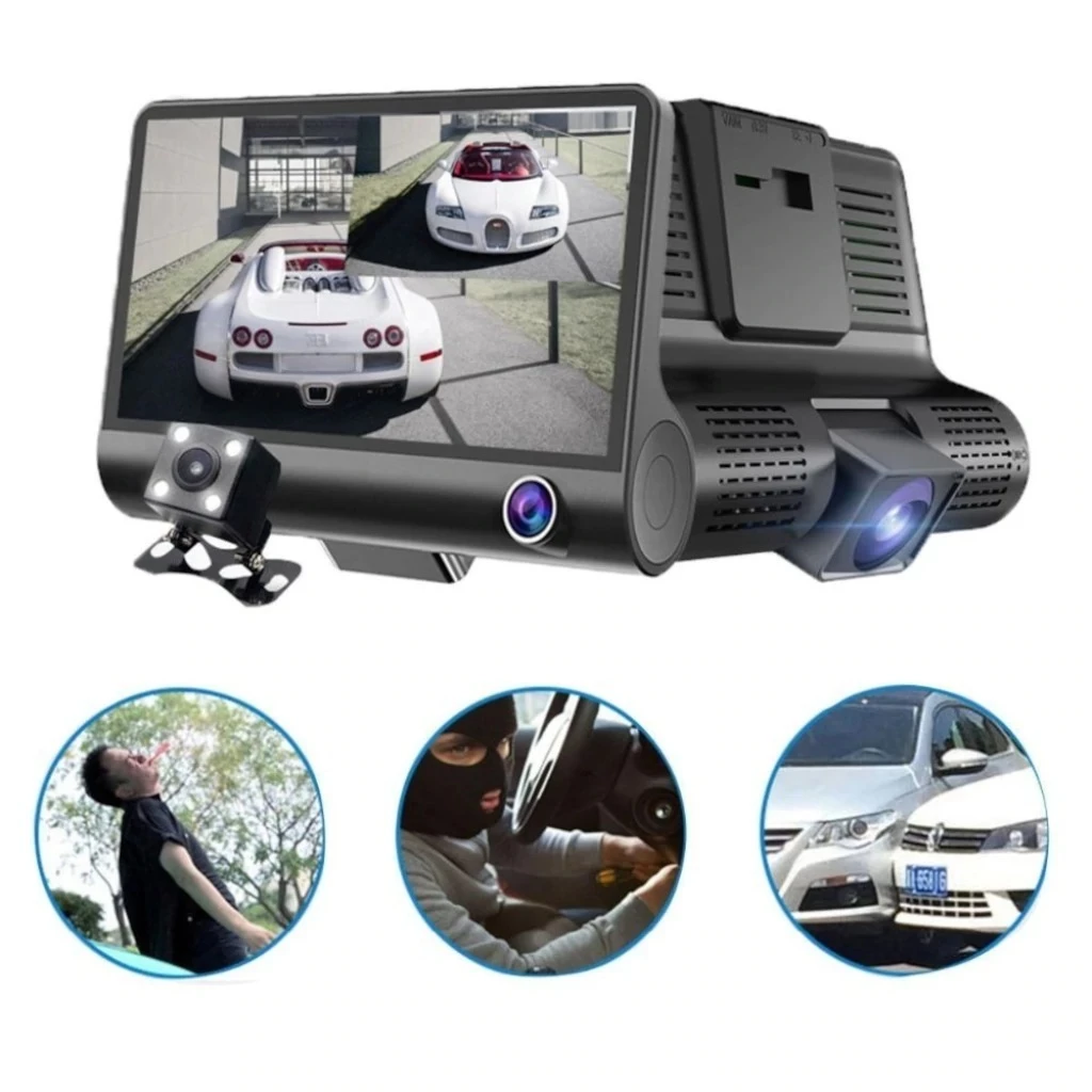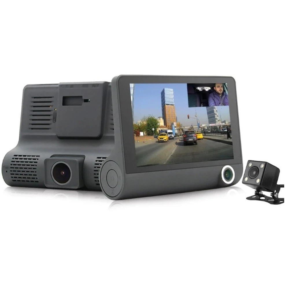 3 Lens 4" IPS Ekran Türkçe Full HD 1080p Kaliteli Dikiz Aynalı 3 Yönlü Araç İçi ve Geri Vites Tampon Kamerası