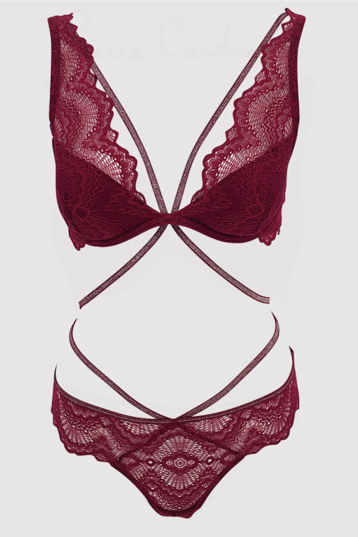 Needion - Kadın Bordo Balenli Simli Şeritli Sütyen Takım Bordo 75B