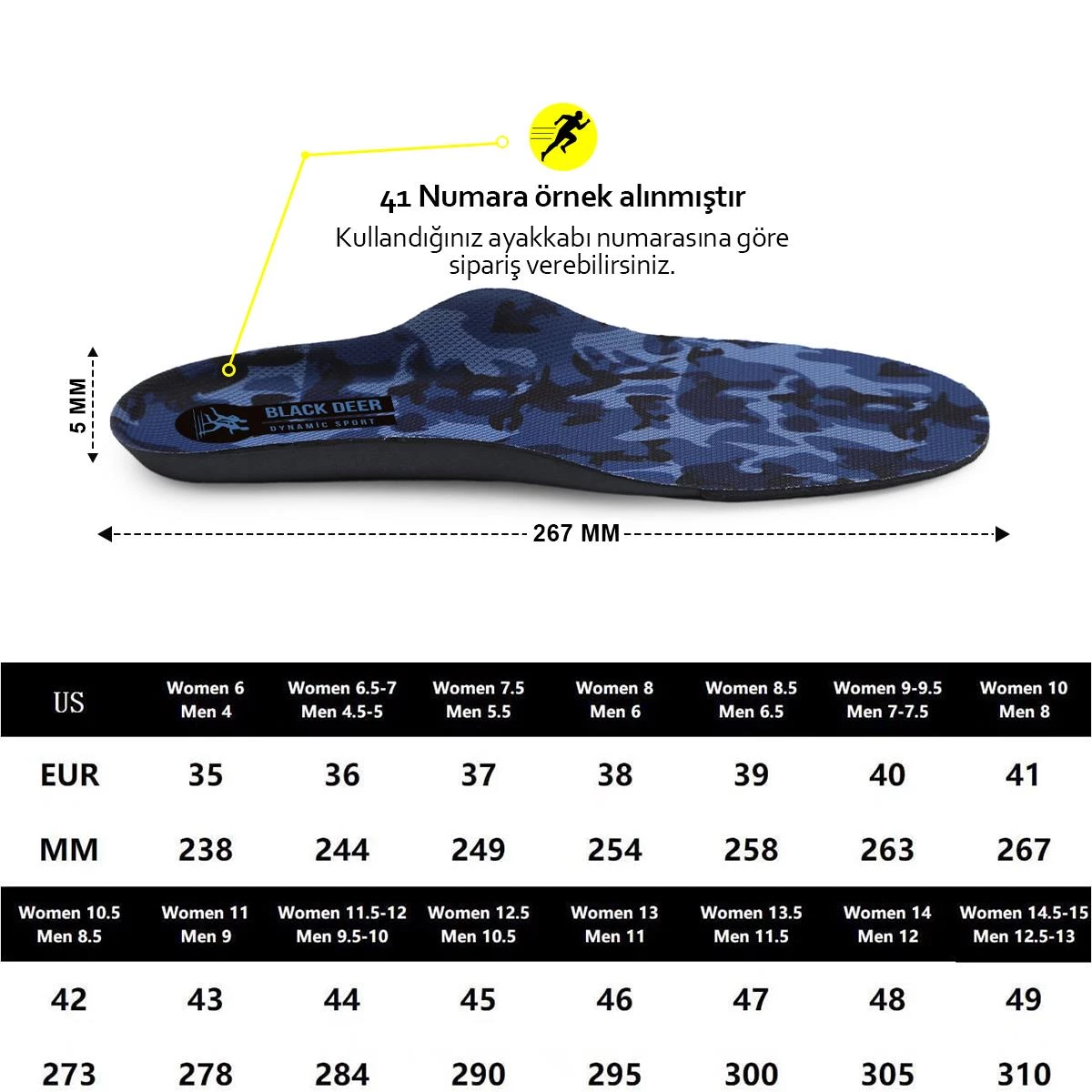 Black Deer Dynamic Sport Mavi-Military Ayakkabı İç Tabanlık 36