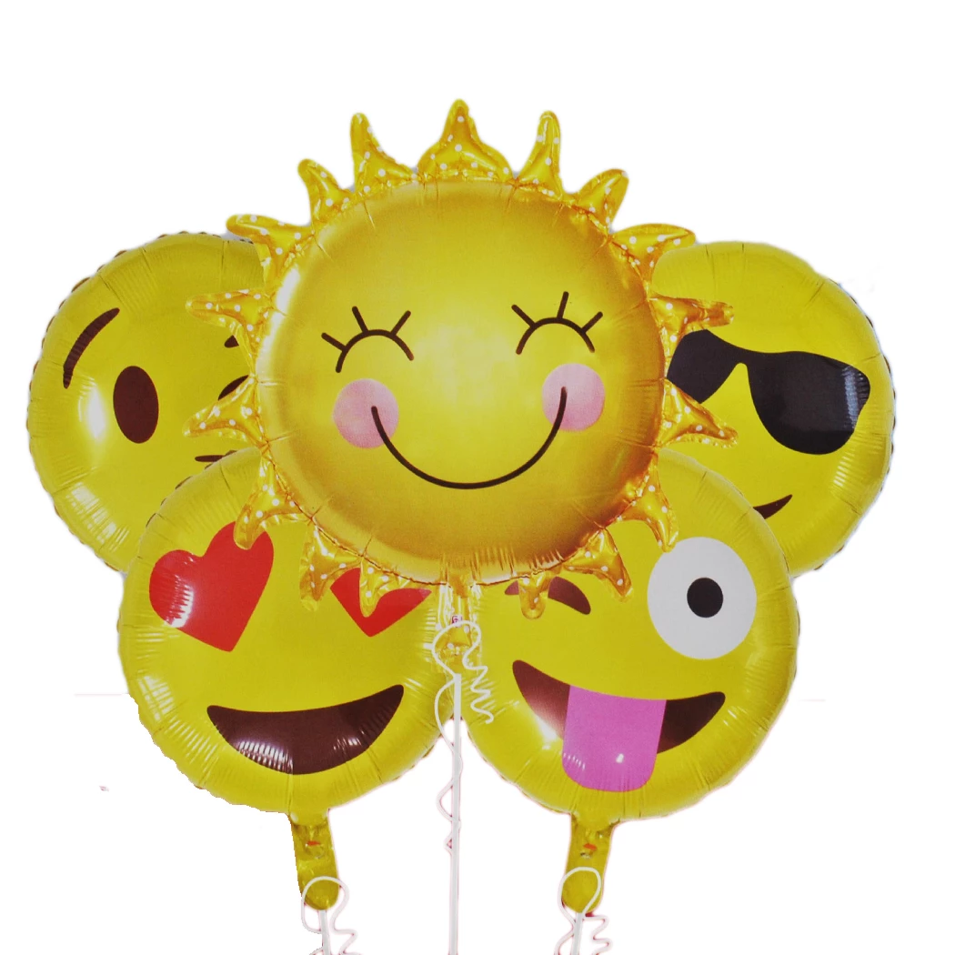 Needion - Folyo Balon Mutlu Emojiler Ve  Güneş Kızlı 5 Li Set