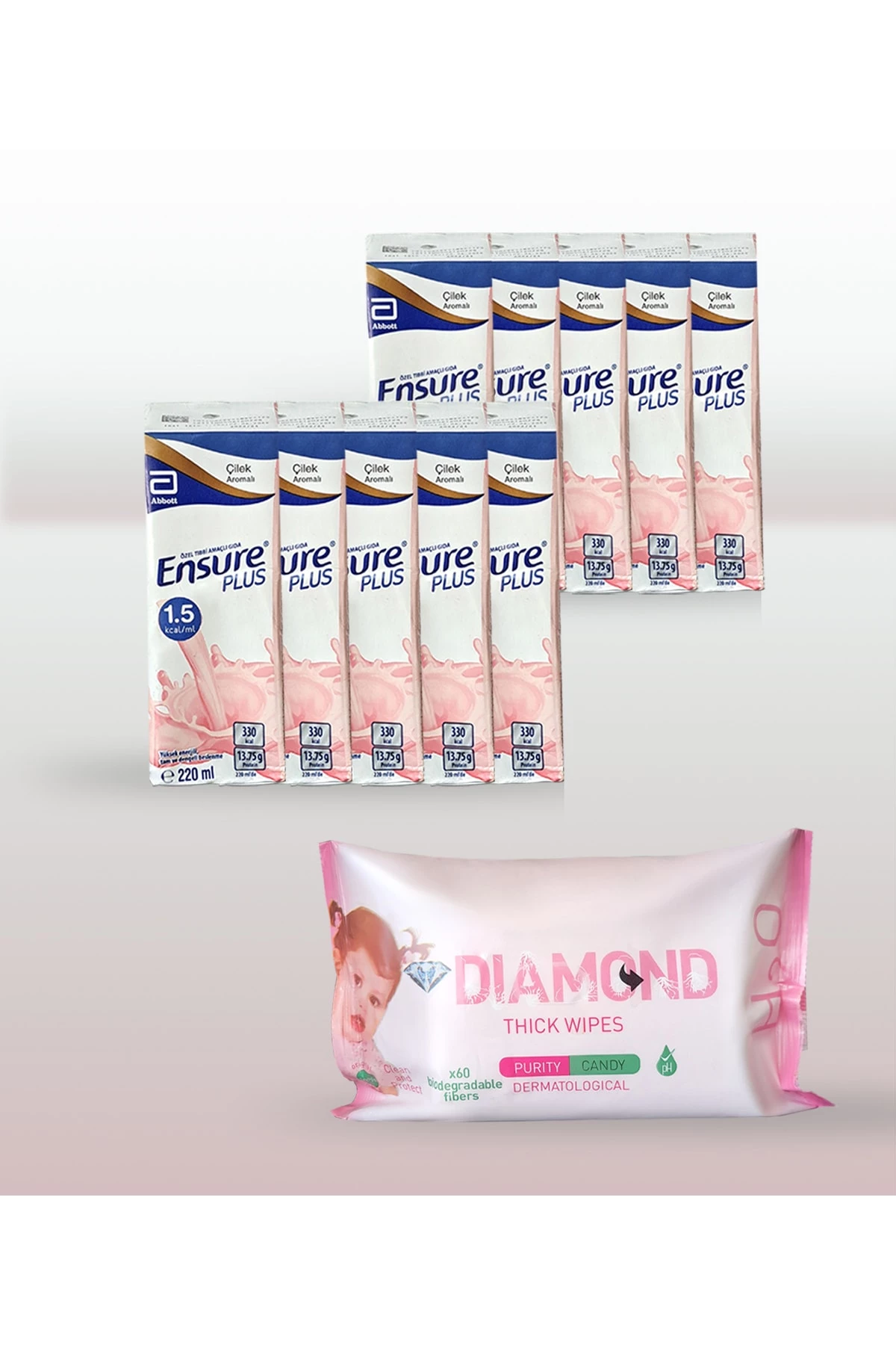10 Adet Ensure Plus Özel Tıbbi Amaçlı Gıda-1.5 Kcal/ml + 1 Adet 60'li Islak Mendil