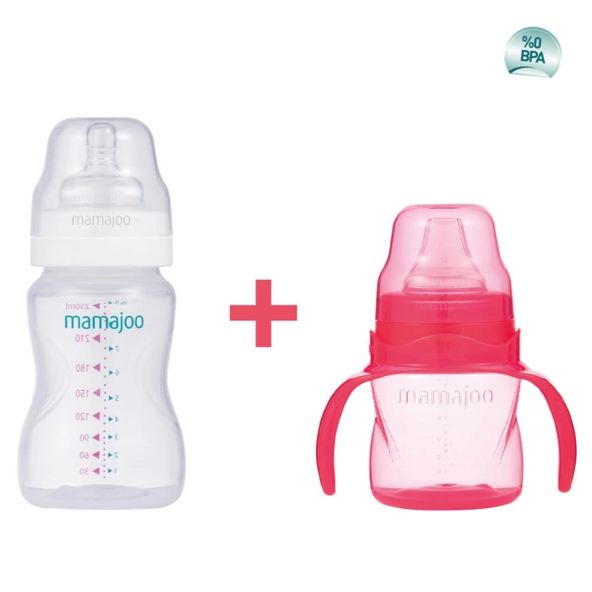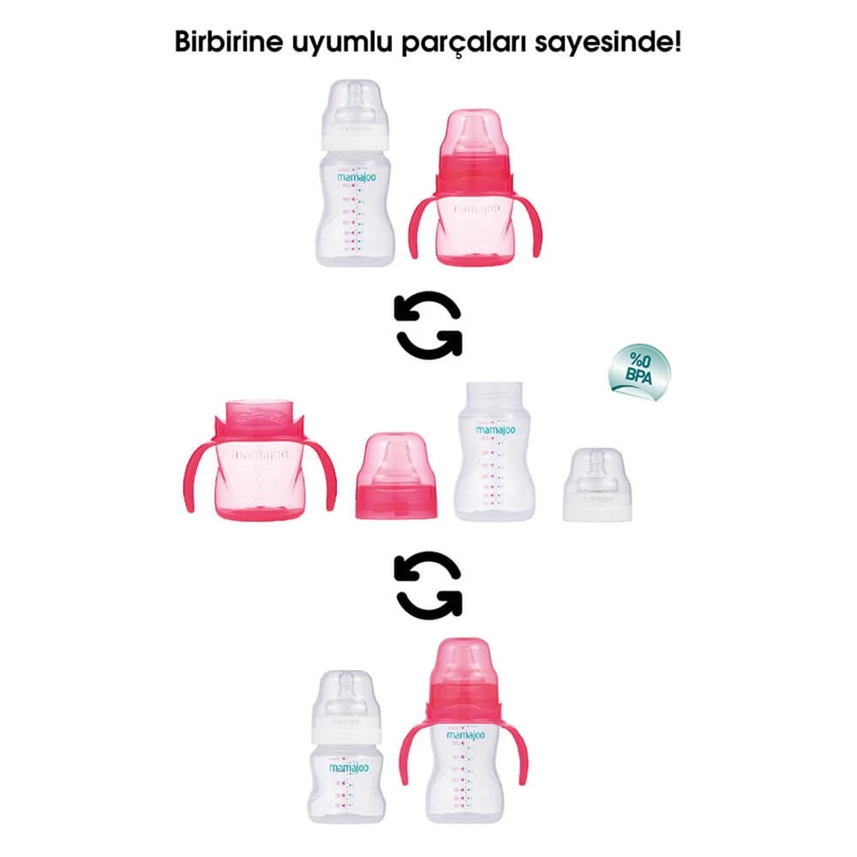 Mamajoo Kulplu Eğitici Bardak 160ml & Silver Biberon 250ml/Pembe