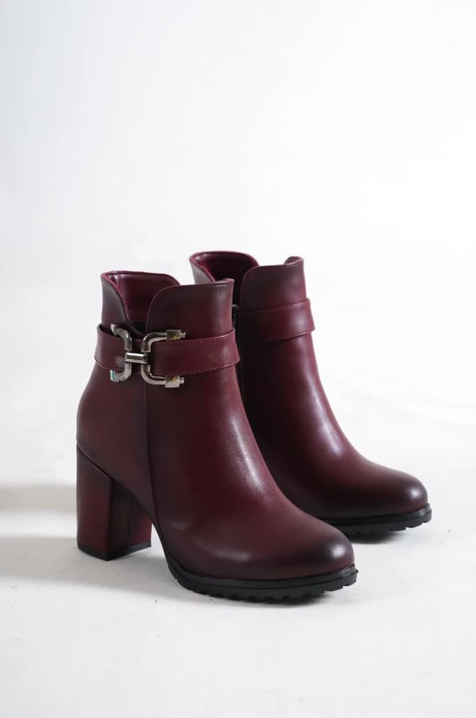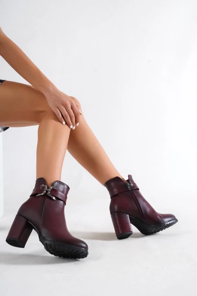Needion - Basskan Kadın Senn Bordo Toka Detaylı Günlük Fermuarlı Kısa Bot BORDO 38