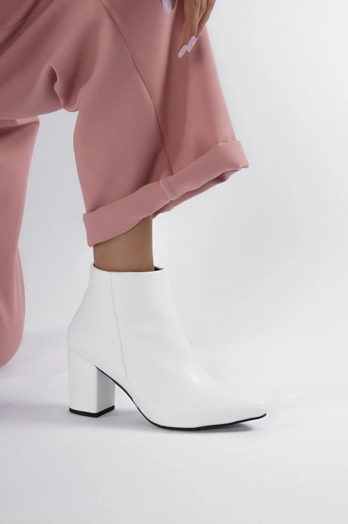 Needion - Bayan Beyaz Berlina Yüksek Topuk Cilt Bot BEYAZ 37