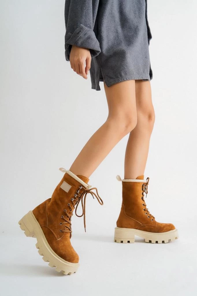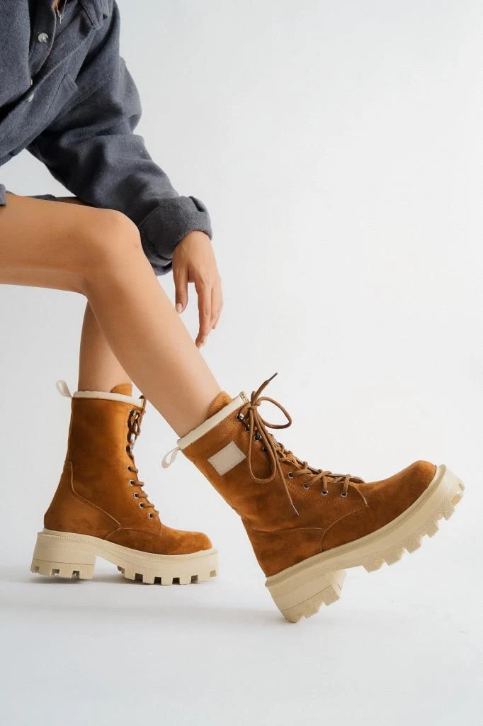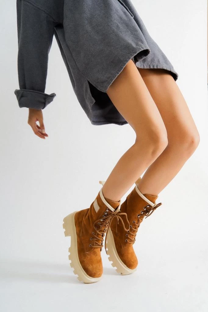 Needion - Bayan Taba Lonna Süet Bağcıklı Bot TABA 37