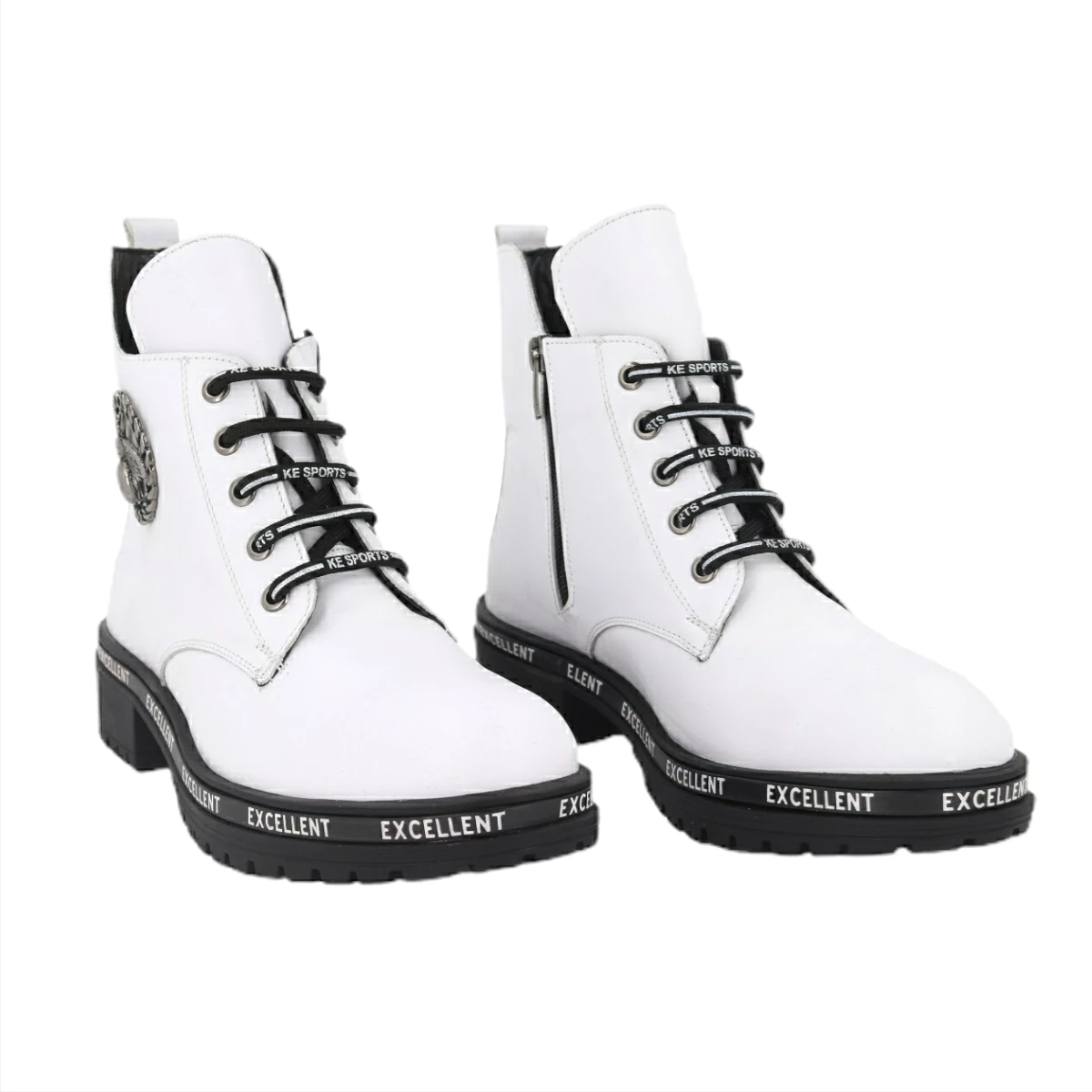 Needion - Beety 21-2013 Hakiki  Deri Kadın Postal Bot Beyaz 37