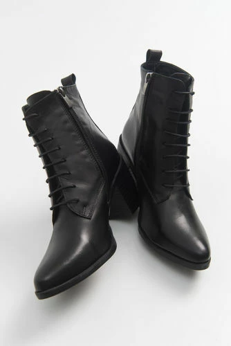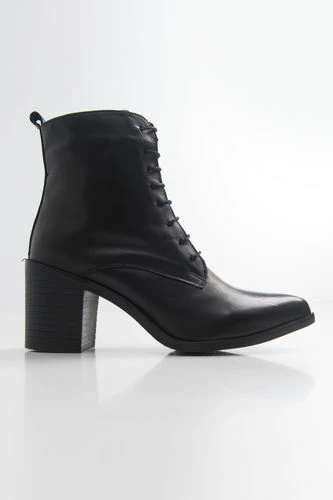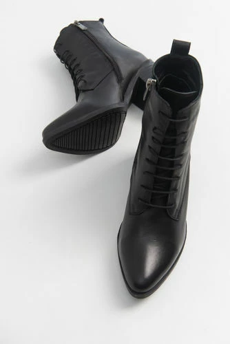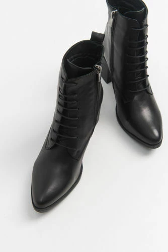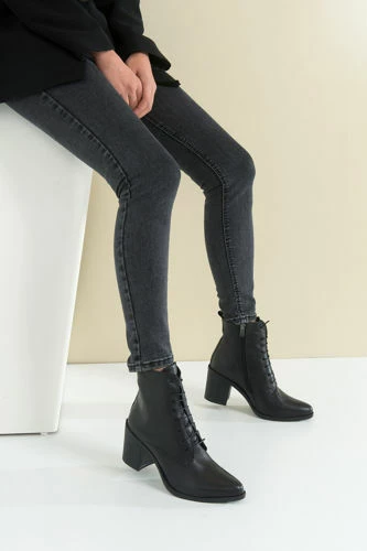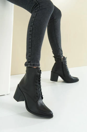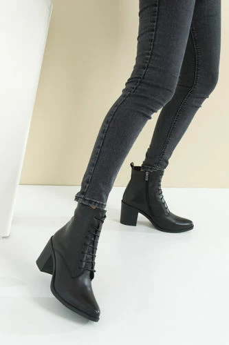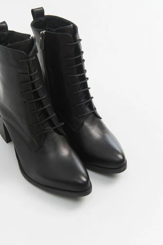 Kadın Deri Topuklu Bağcıklı Bot SIYAH ALP22140 SIYAH 40