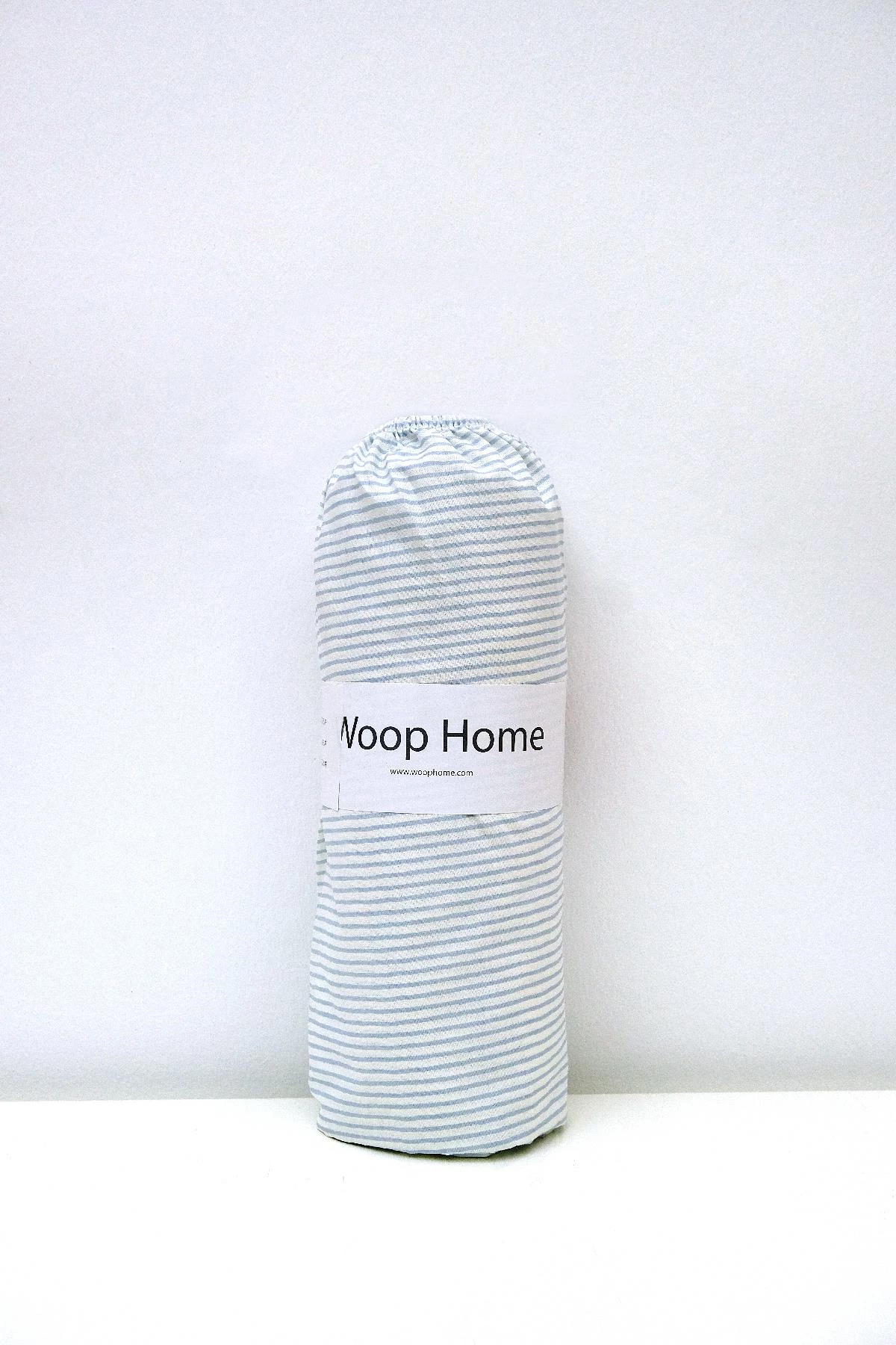 100x190 Beyaz İnce Çizgili Renkli Tek Kişilik Çarşaf Mavi