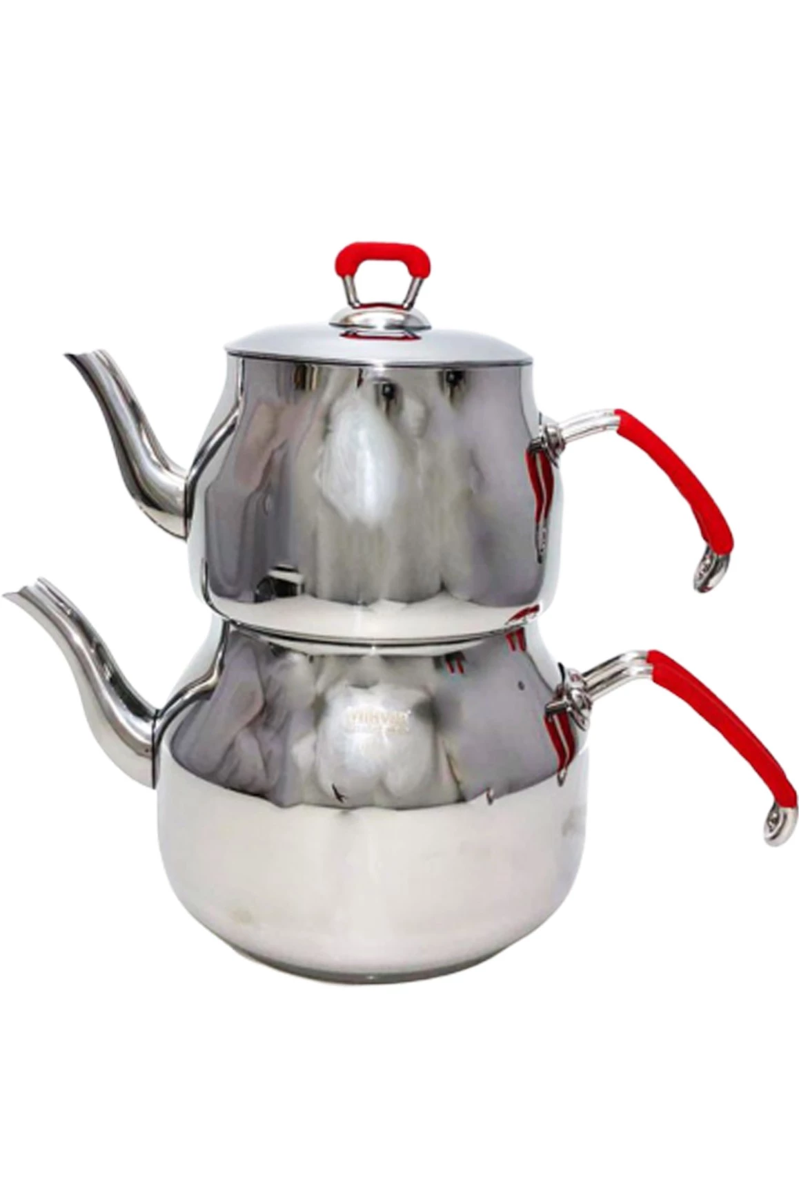 Needion - Piramit Orta Boy Kırmızı Silikon Saplı Paslanmaz Çelik Çaydanlık  Renkli