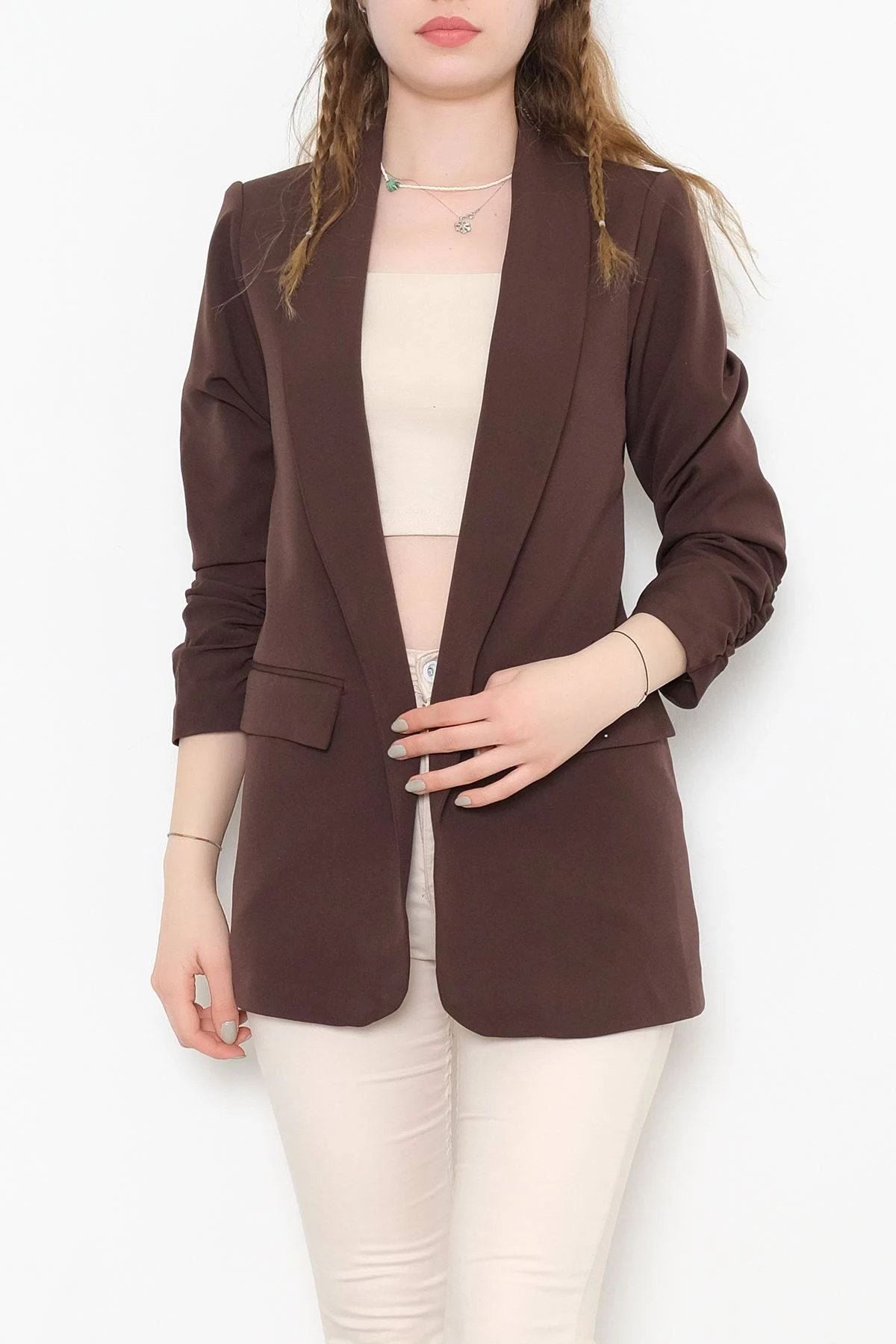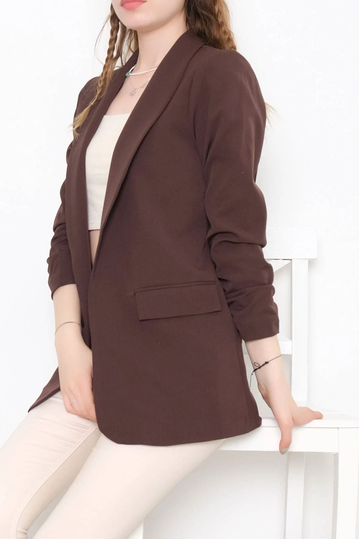 Needion - Kolu Büzgülü Ceket Kahve - 1108.1174.