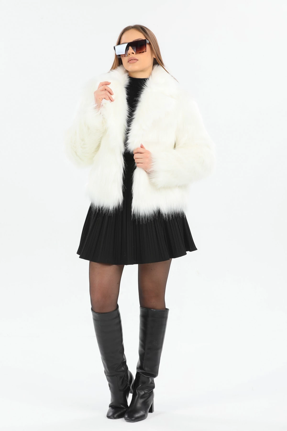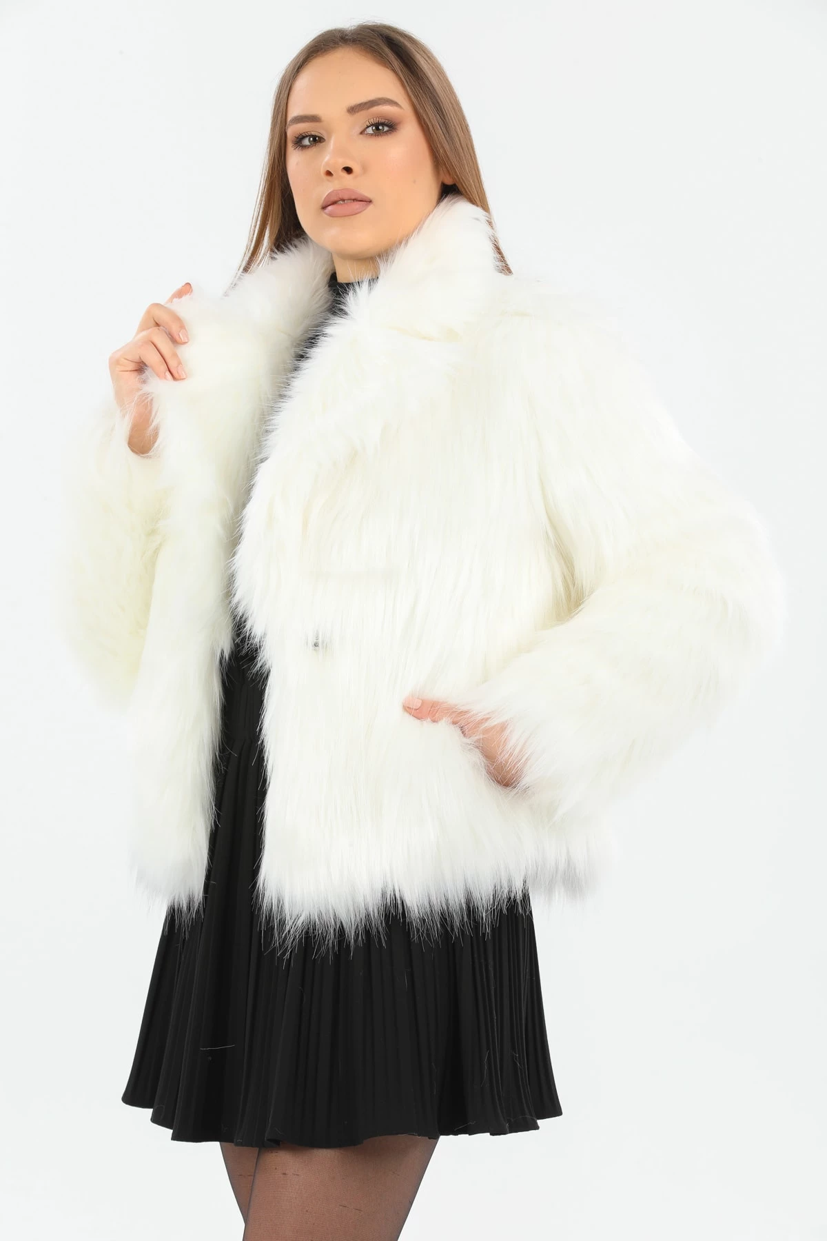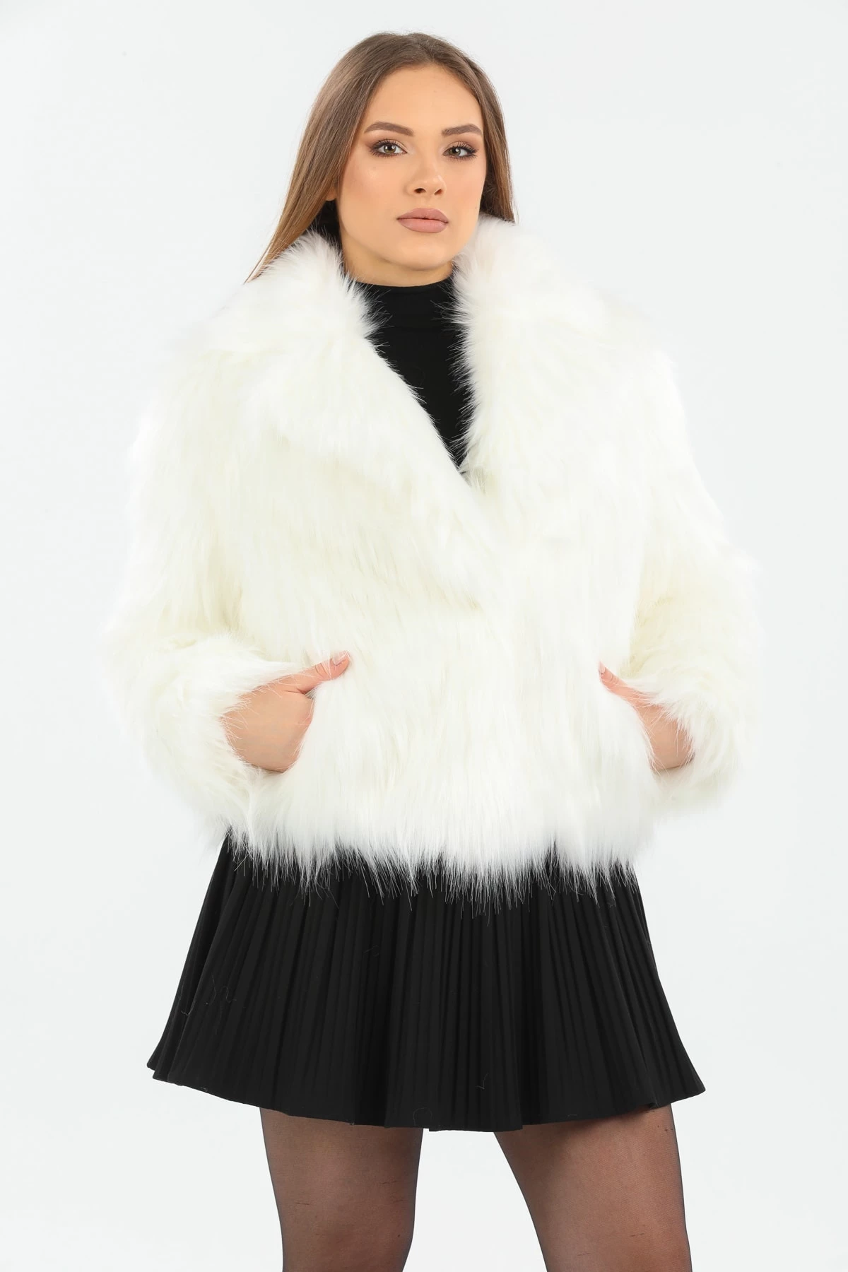 Suni Kürk Beyaz Kadın Mont