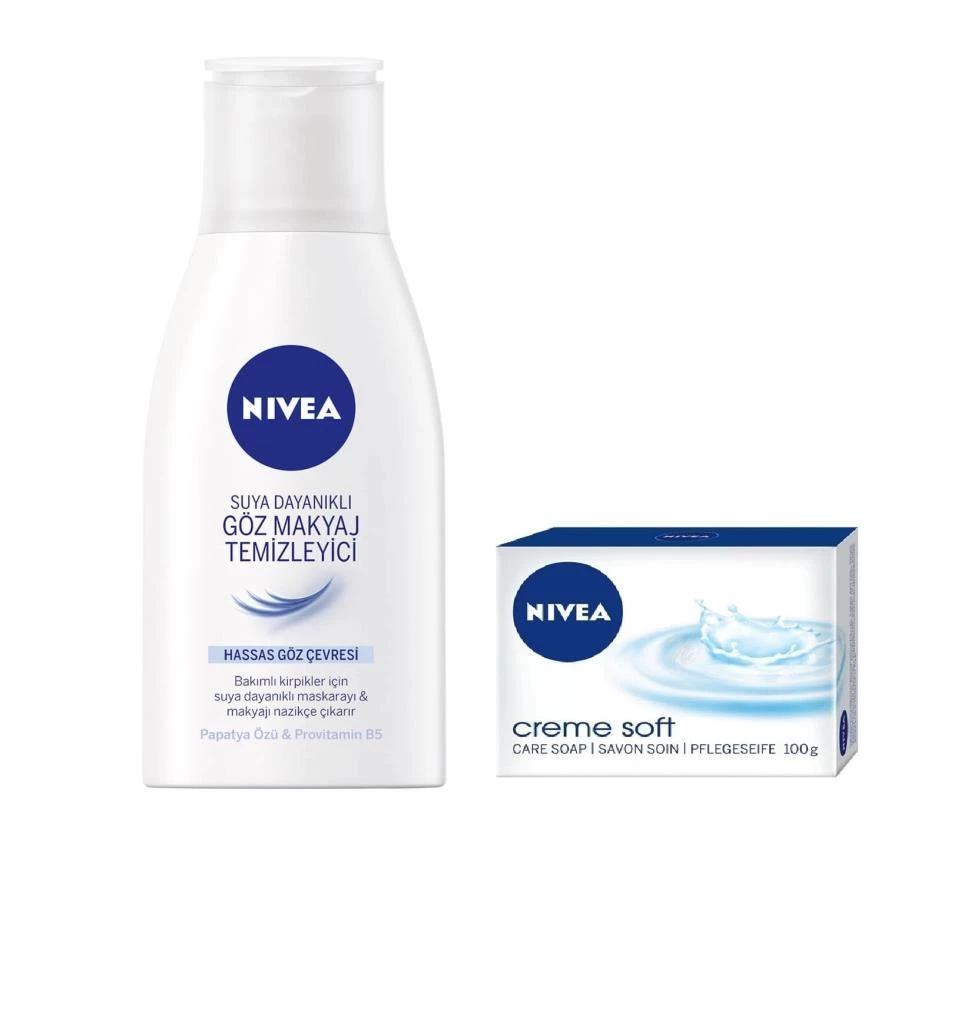 Nivea Suya Dayanıklı Göz Makyajı Temizleyici Hassas 125ML + Creme Soft Sabun 100G
