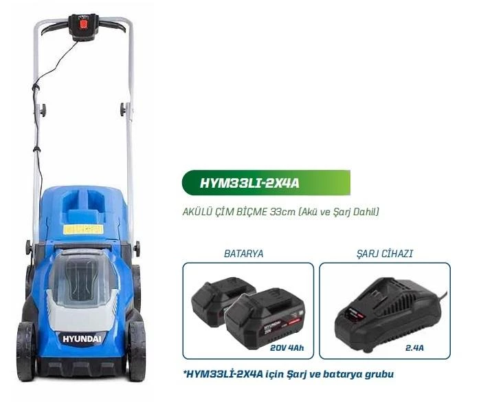 • Hyundai HYM33Lİ Akülü Çim Biçme Makinesi 2 Adet 4000 mAH Akü ve Şarj Aleti Fİyata Dahildir