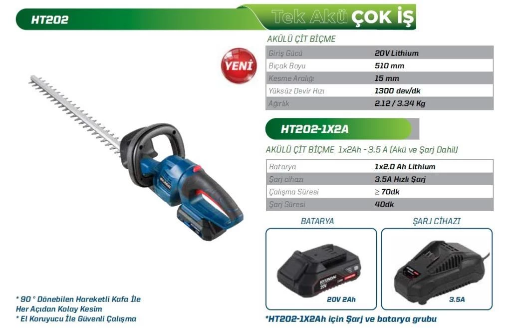 Hyundai HT202 Akülü Çit Biçme 20V (Akü ve Şarj Cihazı Dahil )
