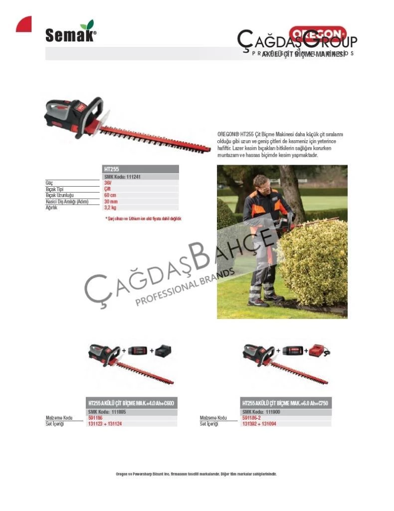 Oregon HT255 Akülü Şarjlı Çit Budama Makinesi-Lüxtrüm 34V 60cm