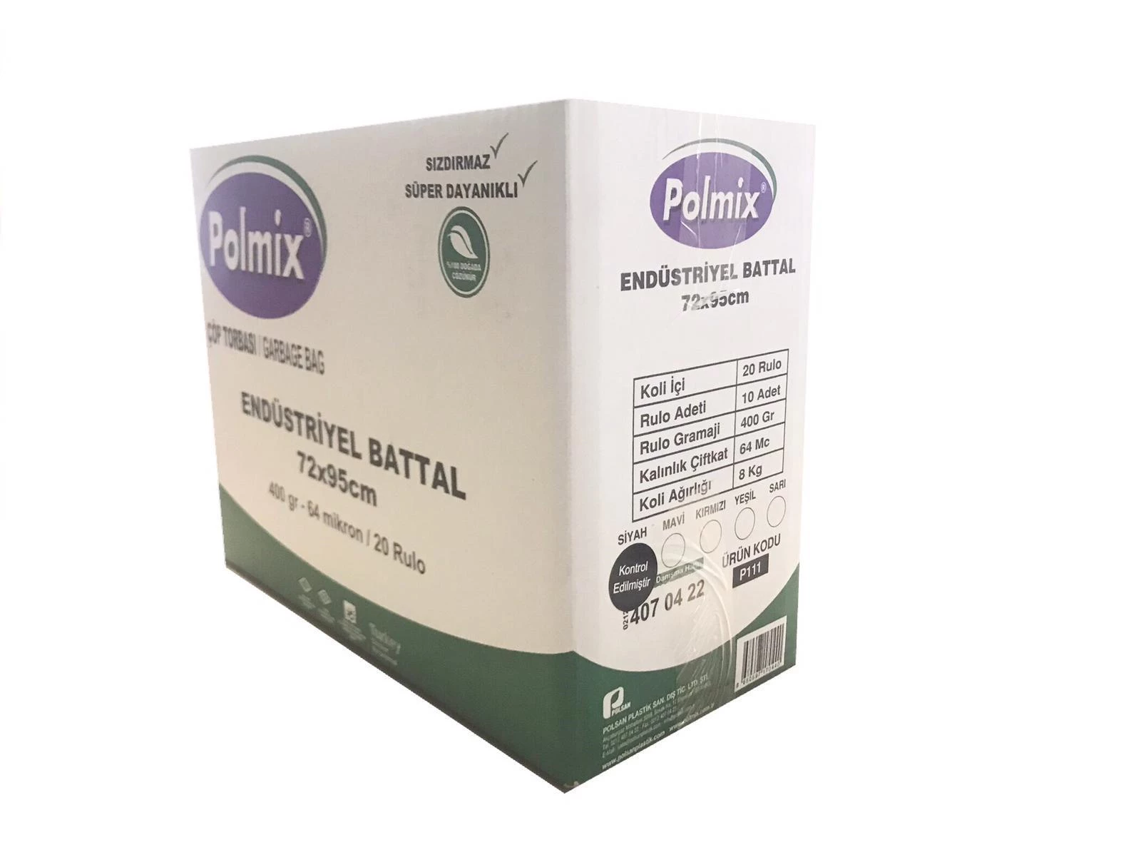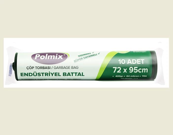 Ürün Adı : ÇÖP TORBASI POLMİX ENDÜSTİRİYEL BATTAL BOY 400 GRAM 72 X 95 64 MİKRON SİYAH 1 PAKET 70 LITRE
