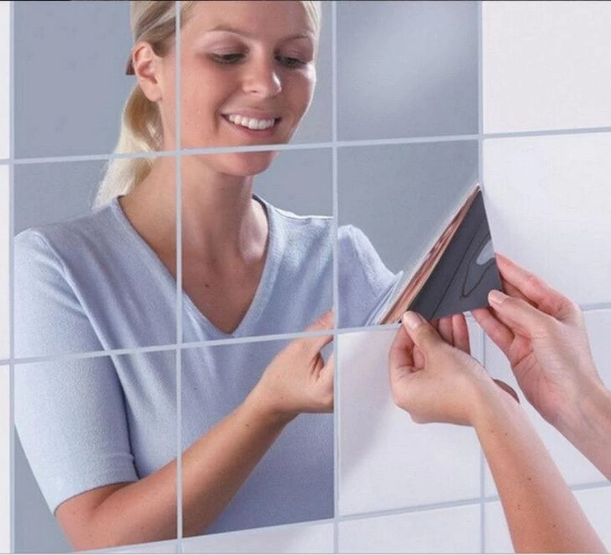 Needion - Yapışkanlı Dekoratif Folyo Ayna Kare ( 9 Adet )