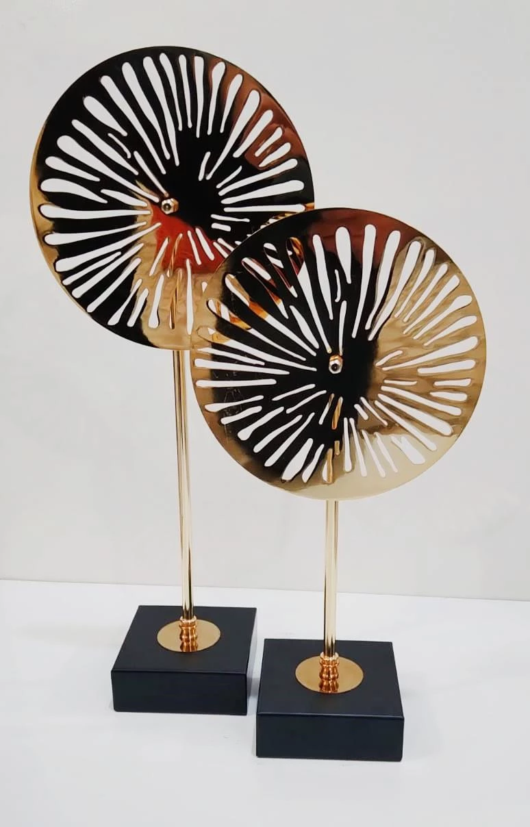 Dekoratif Obje Ayaklı Metal Lotus Gold Renk 2li