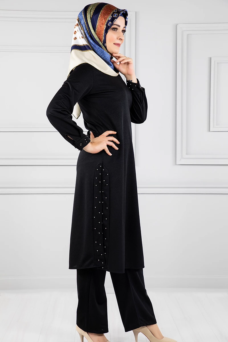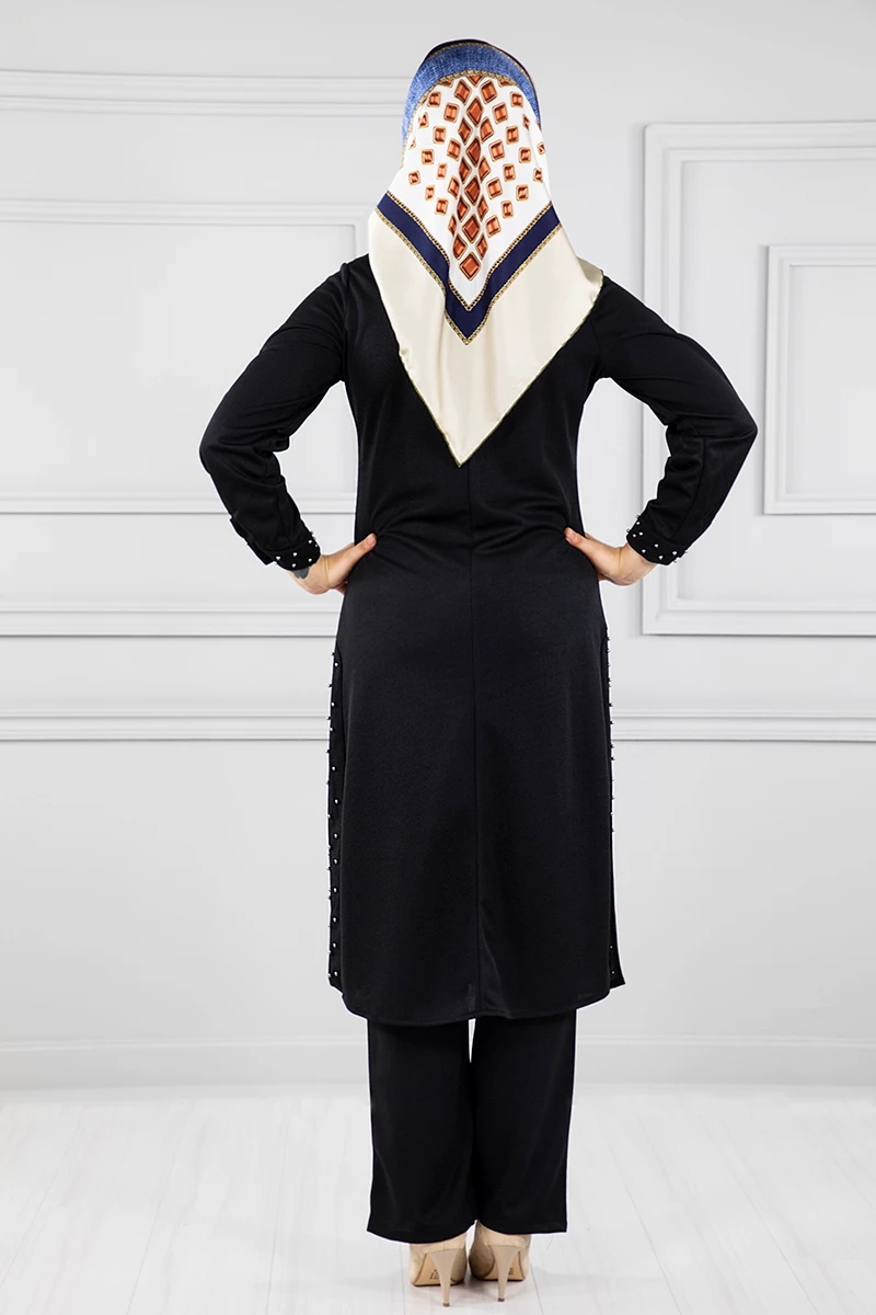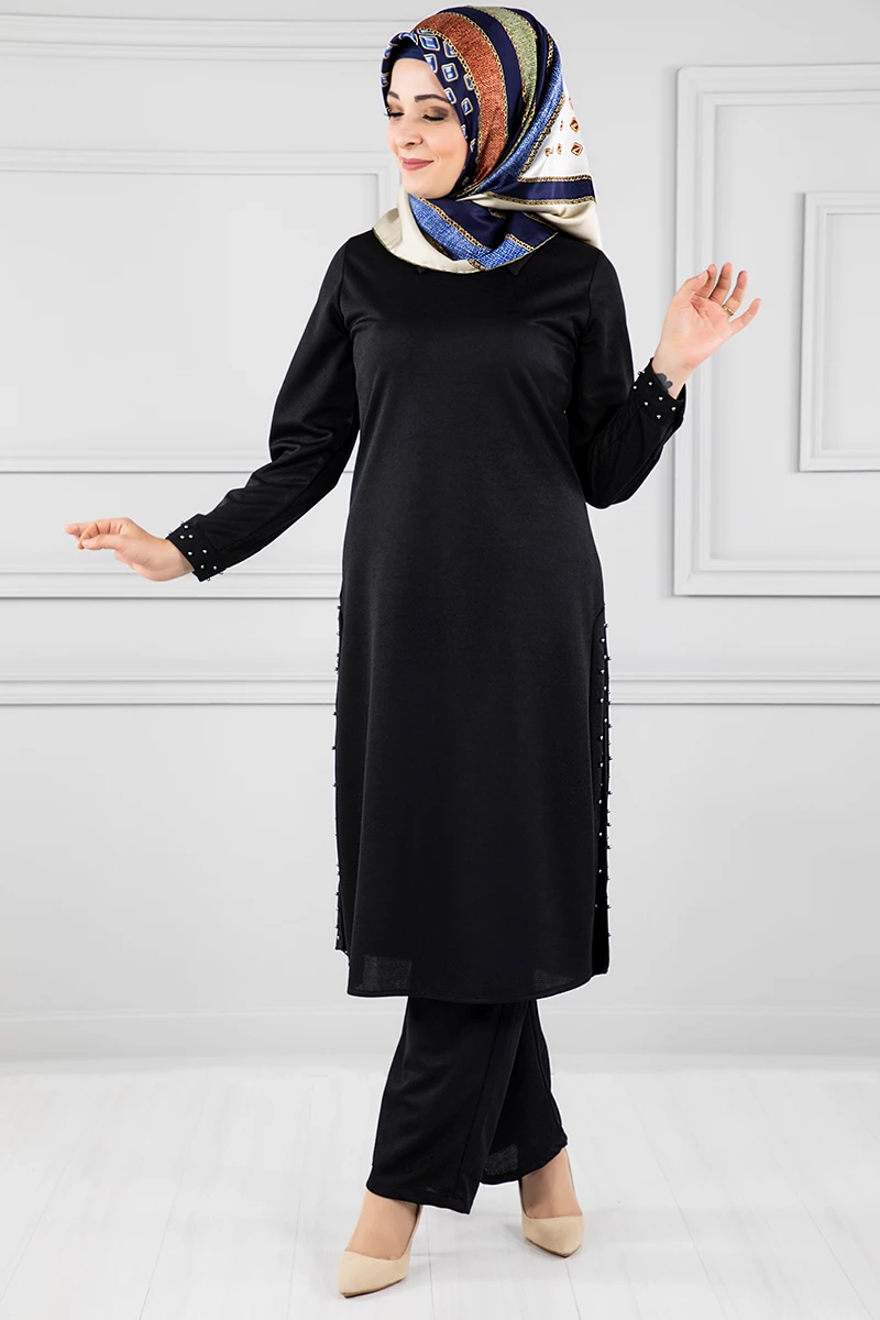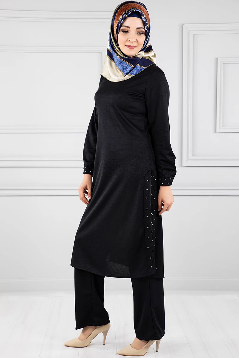 Boncuk Süslemeli Tesettür İkili Takım Siyah 38