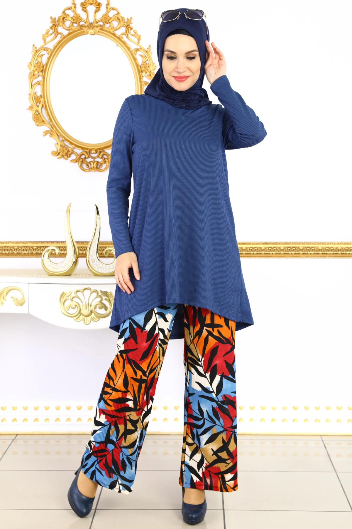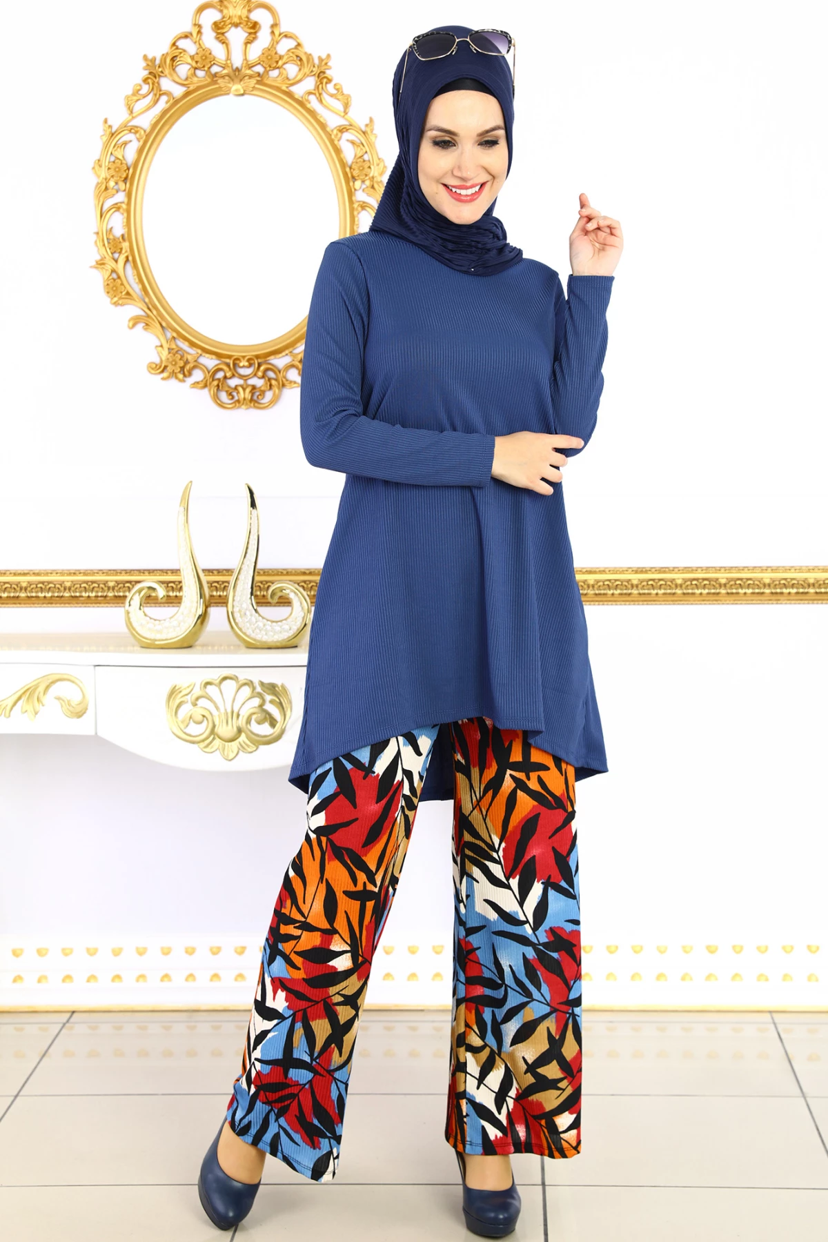 Elastan Fitilli Likralı Penye Kumaşından üretilmiştir.Pantolon Tunik Kombin Olarak Tasarlanmıştır.Tam kalıptır.