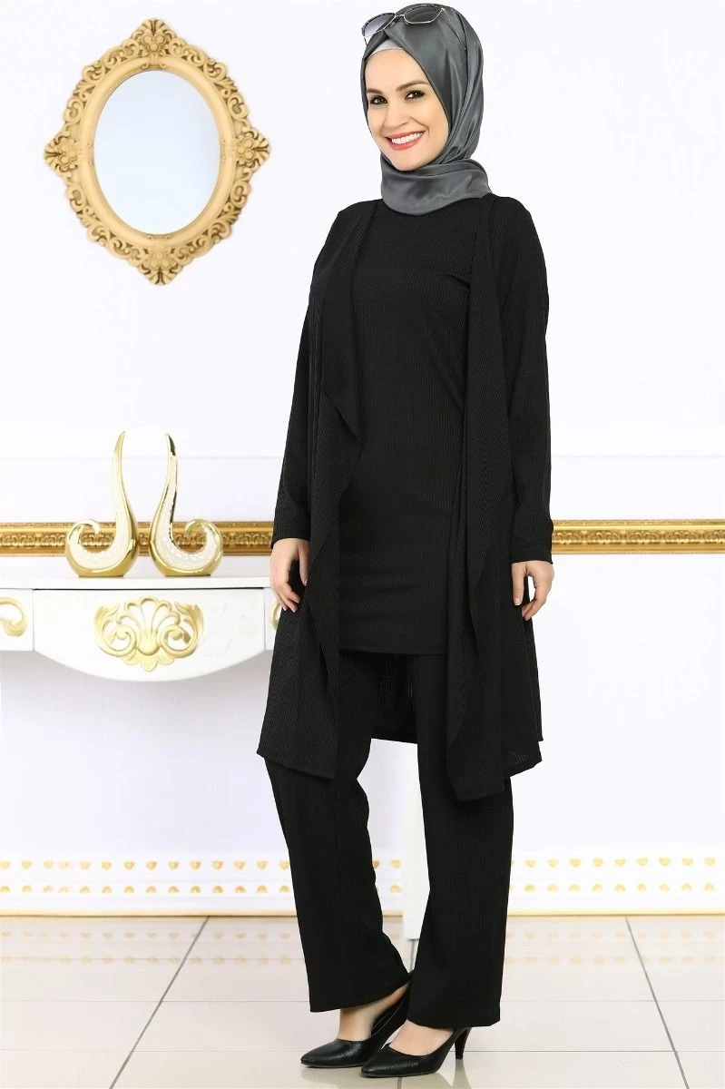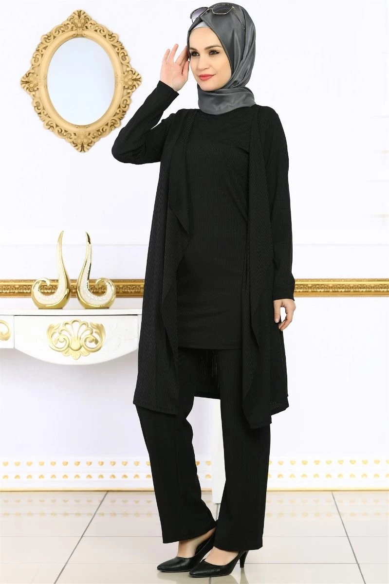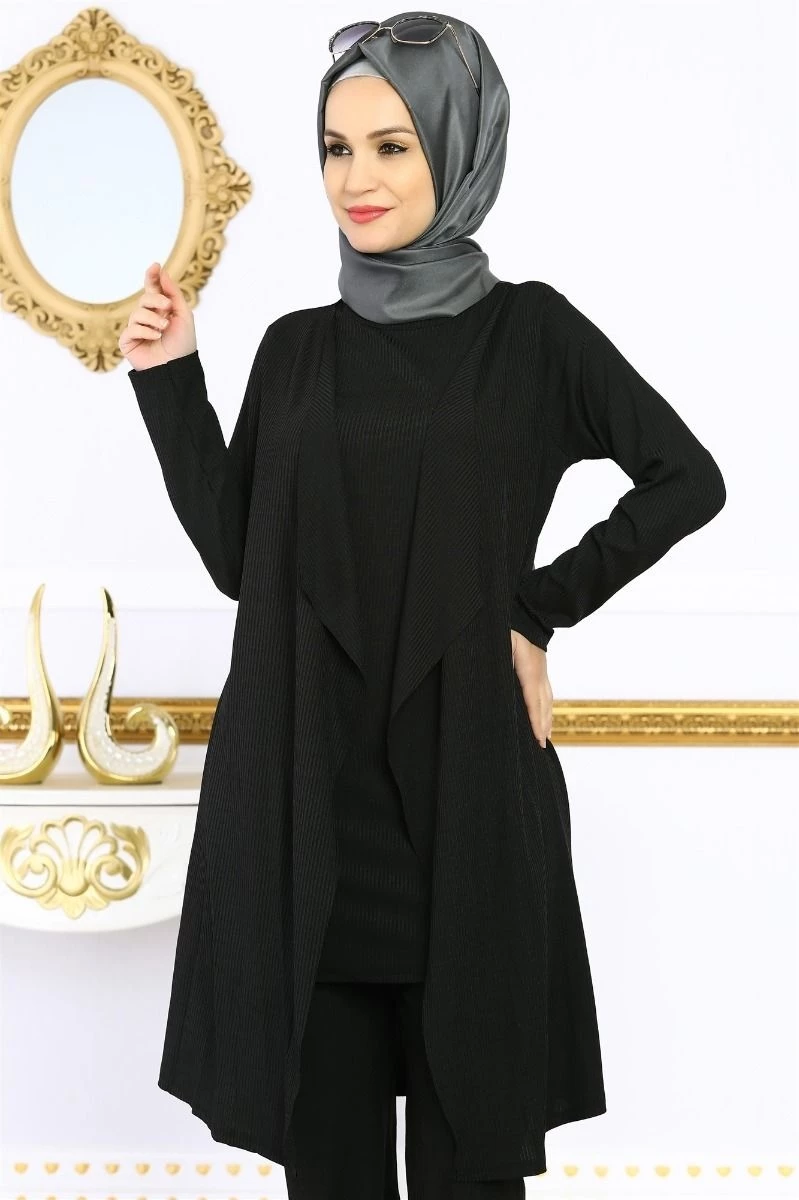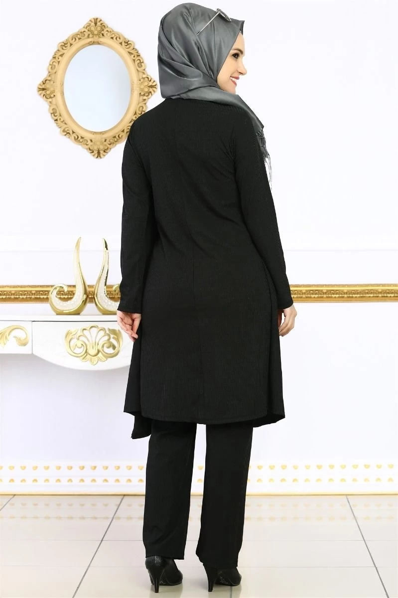 Piliseli Tesettür 2'li Takım Siyah S