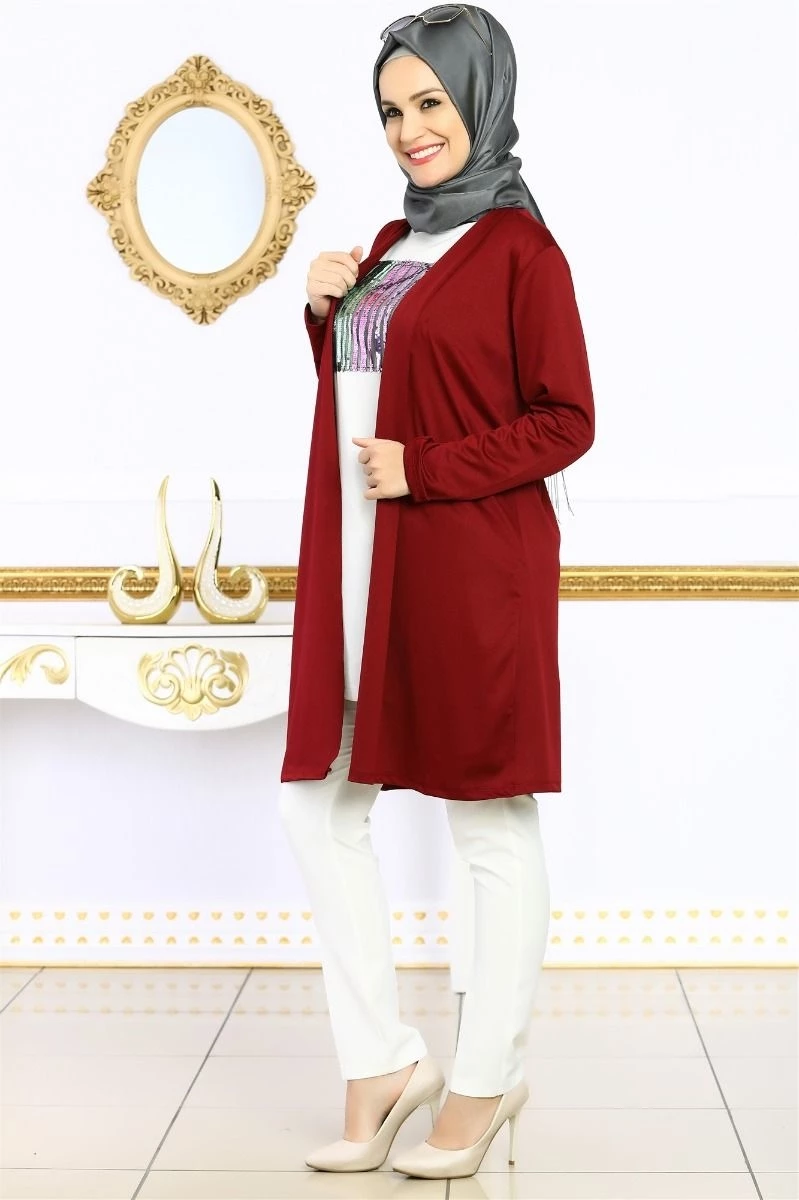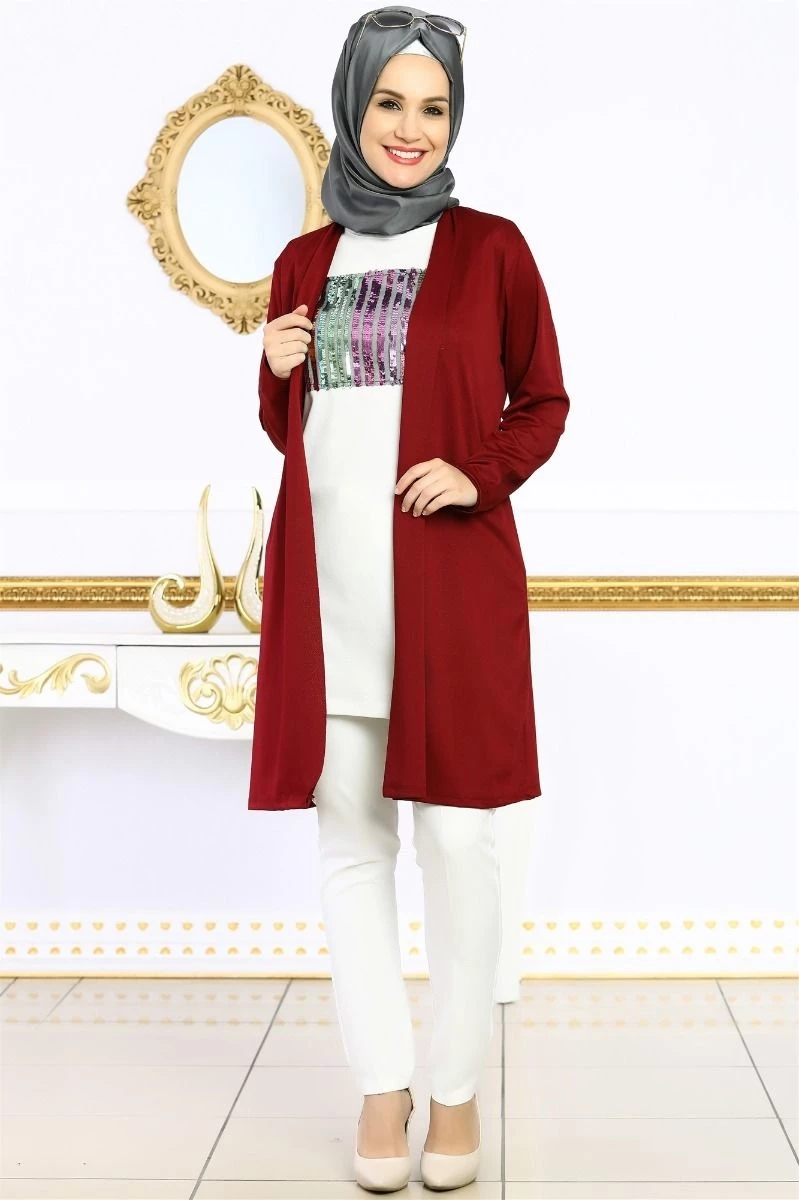 Pul Payetli Tesettür 2'li Takım Bordo S