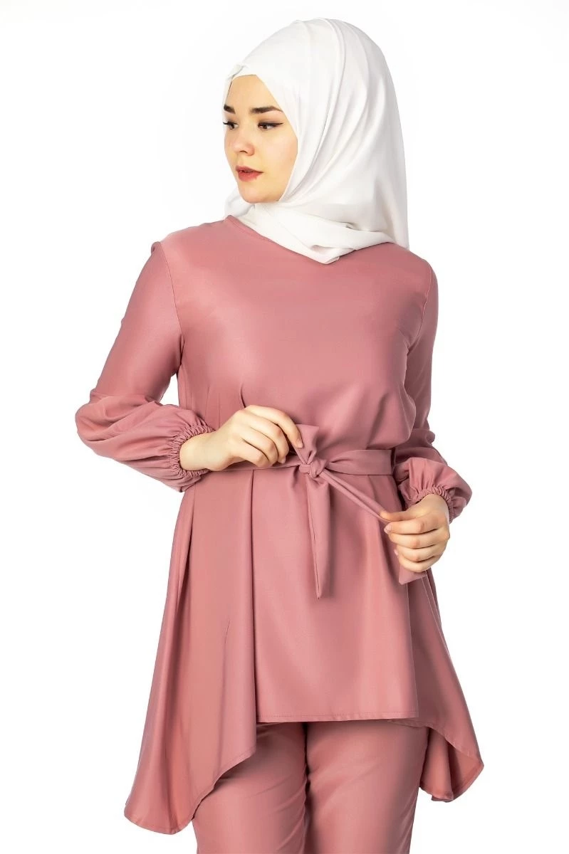 Yeni sezon ürünlerinden olup pantolon tunik kombindir ayrı olarak da kullanılabilir. Kendi kumaşından seyyar kemeri mevcuttur. Ürün tam kalıptır.