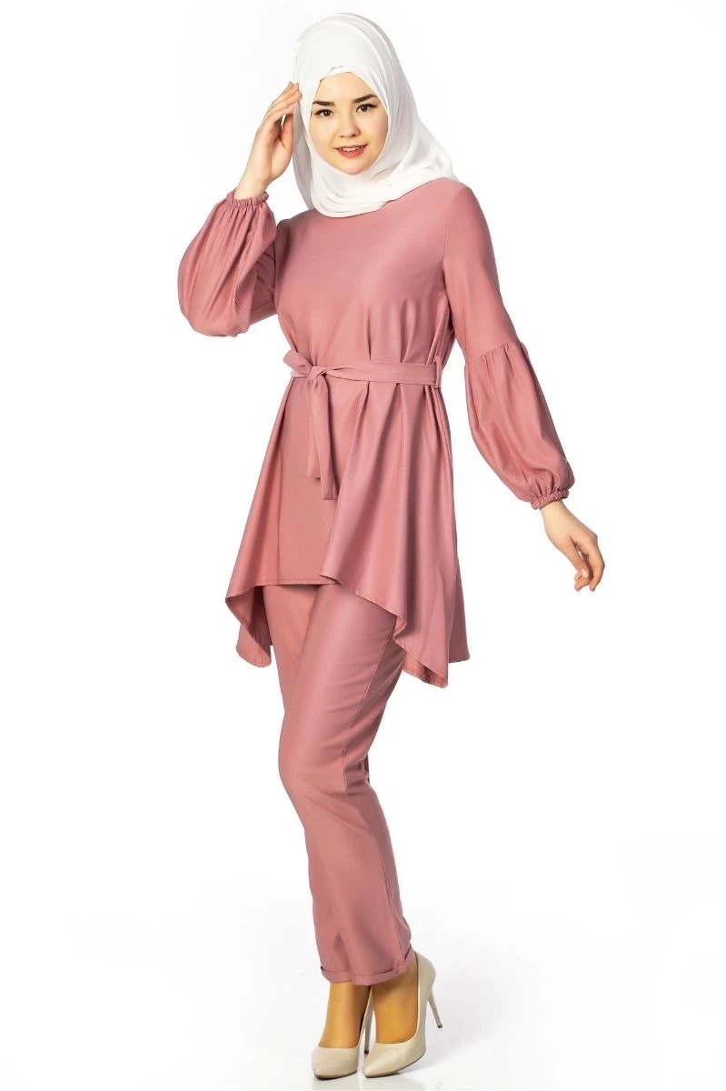 Tesettür Pantolon Tunik Kombin Pudra 38