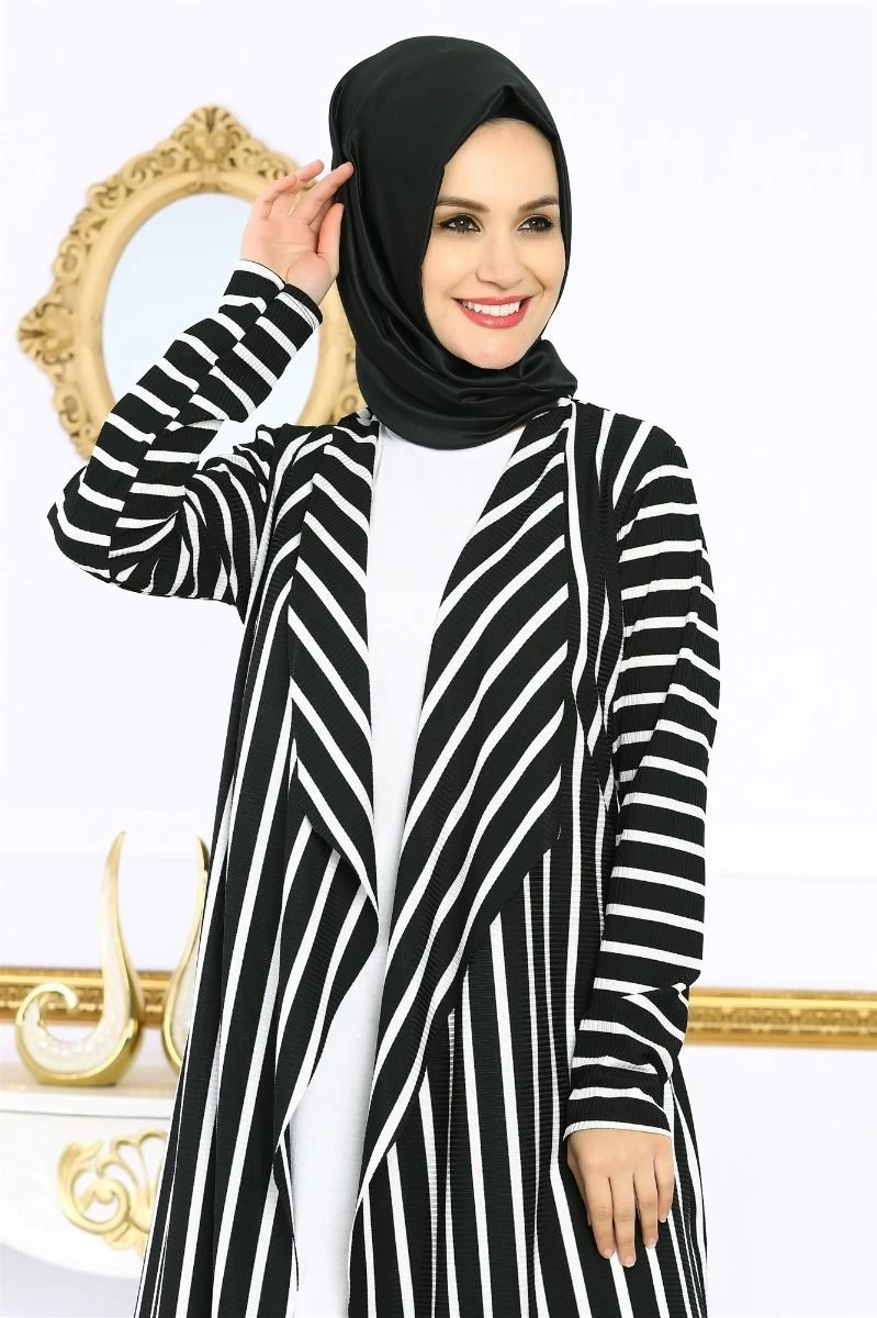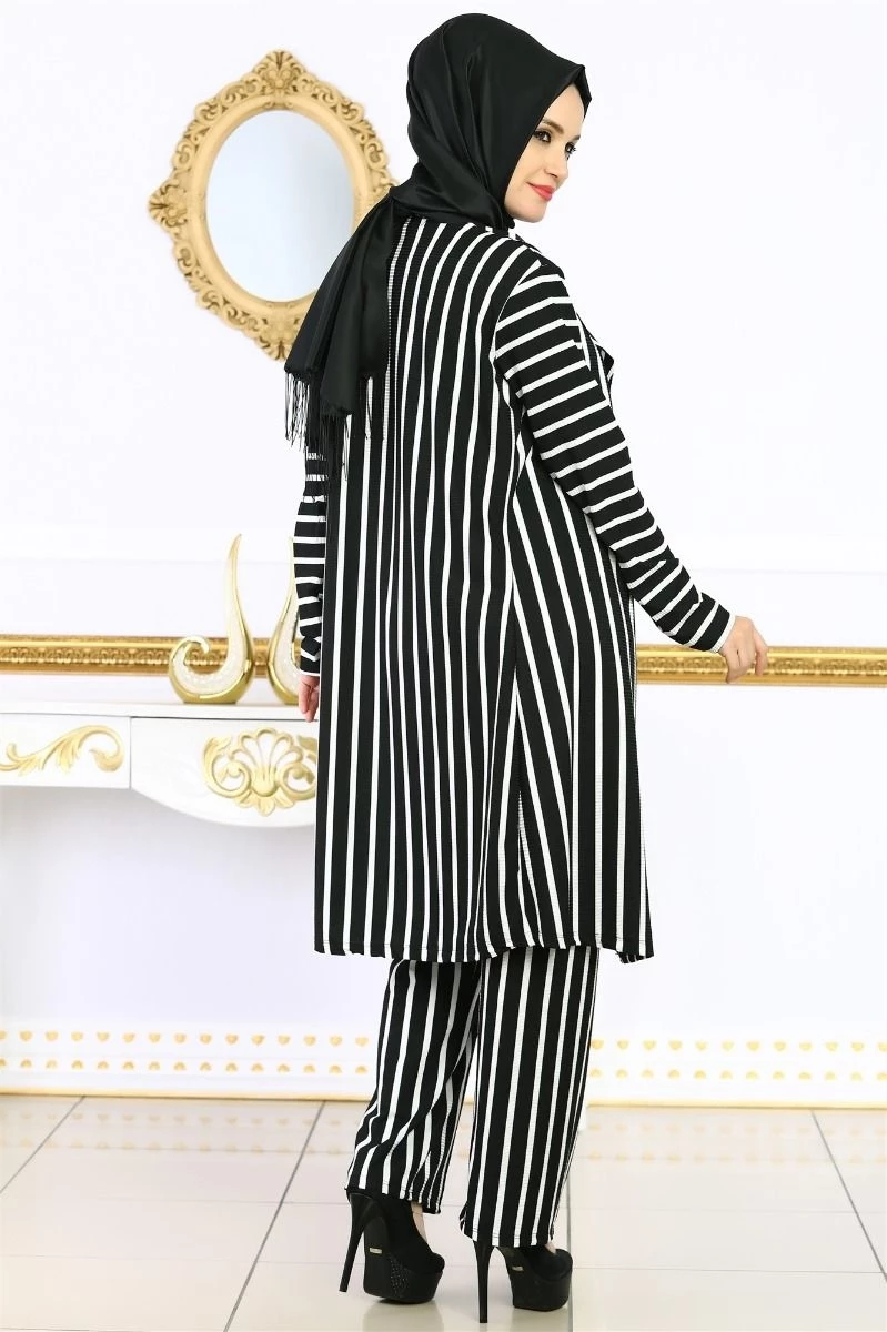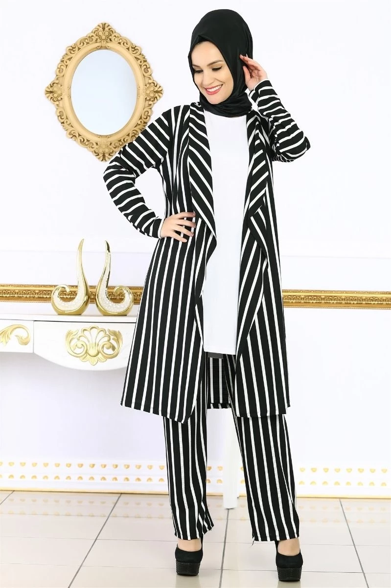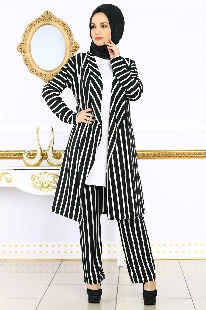Zebra Desenli Tesettür 3'lü Takım Siyah S