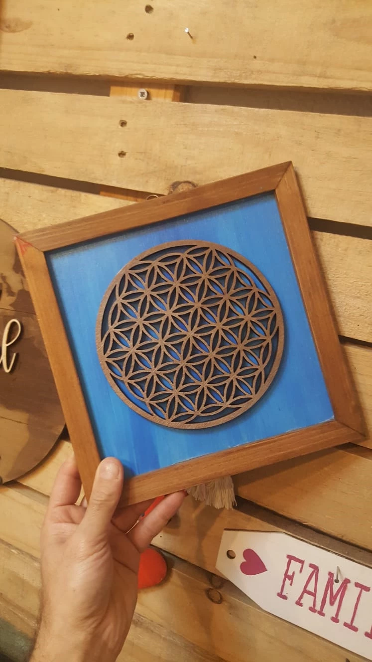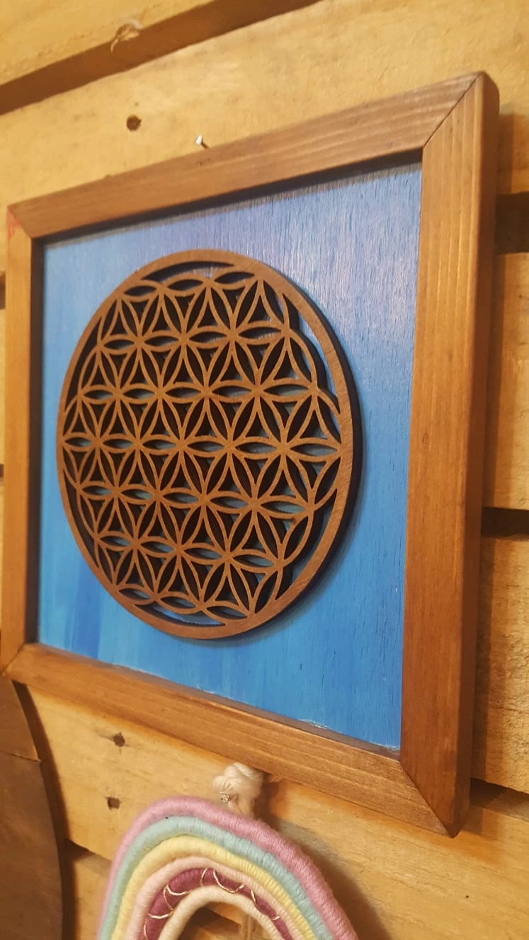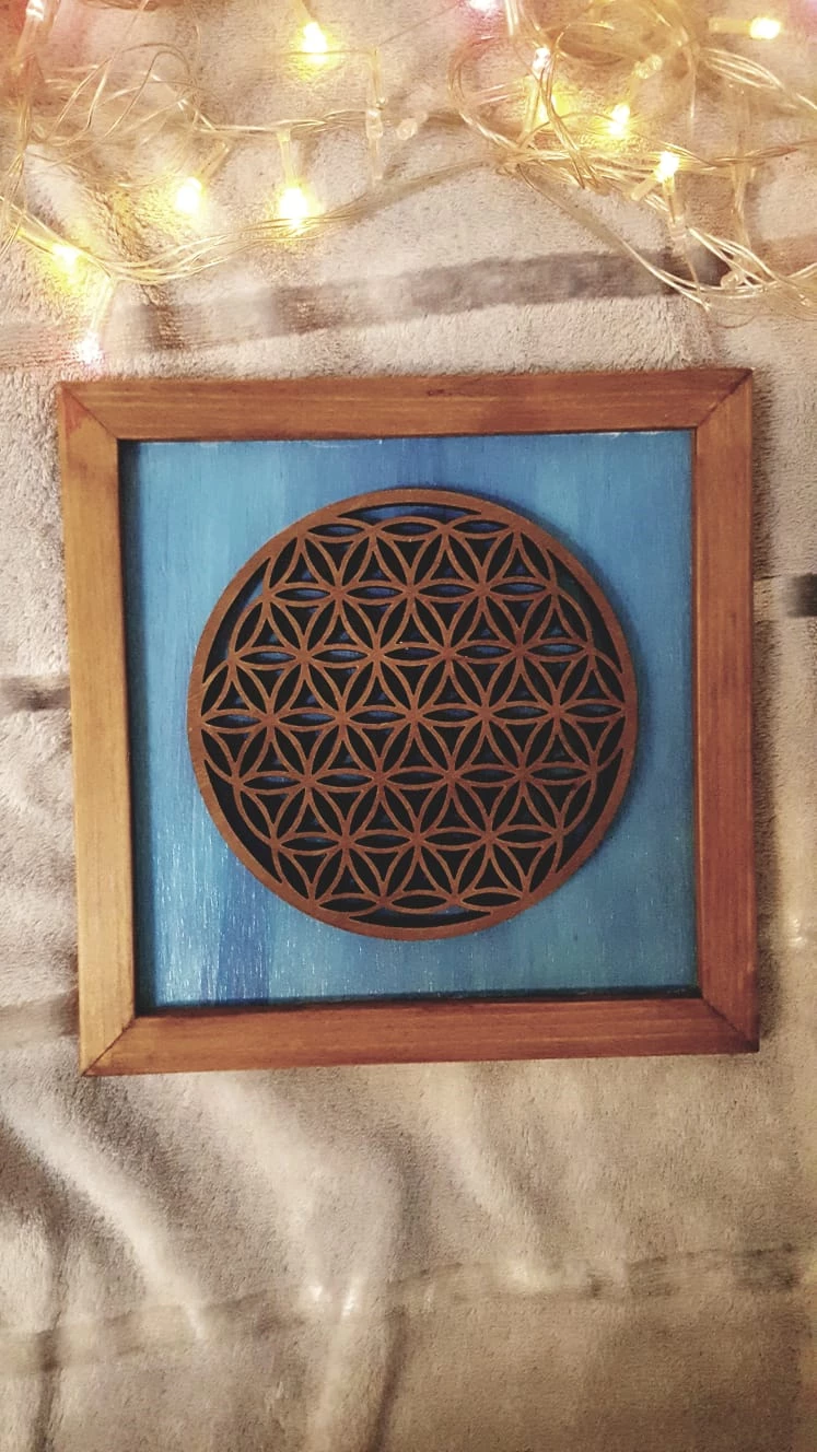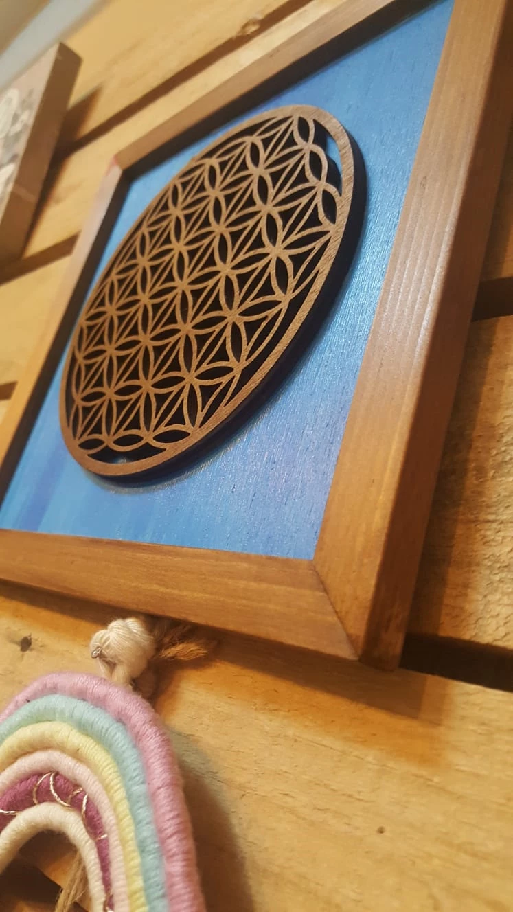 Needion - Çerçeveli Yaşam Çiçeği Tablo Duvar Dekoru eskitme/mavi