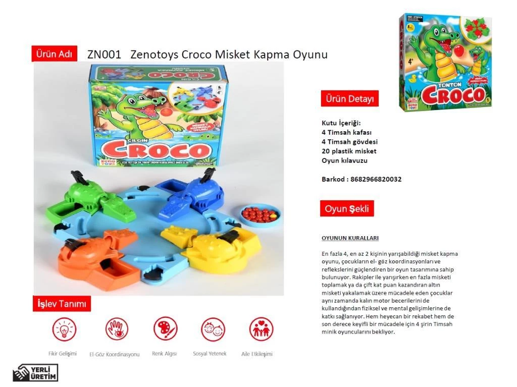 Zeno Toys Çılgın Croco 4Lü Misket Kapmaca Oyunu Zn001