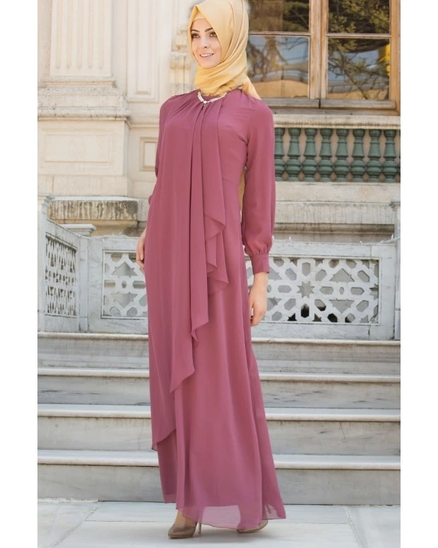 Needion - Asimetrik Tesettür Abiye Elbise Gül Kurusu 52547 38