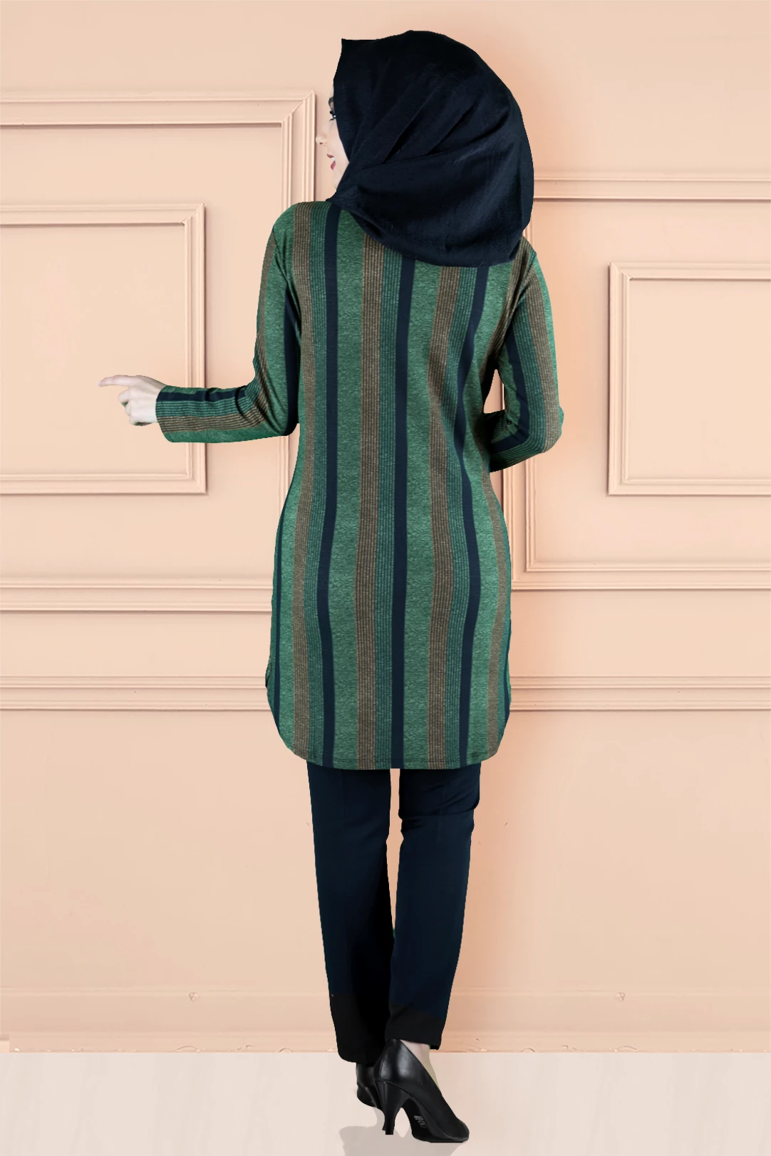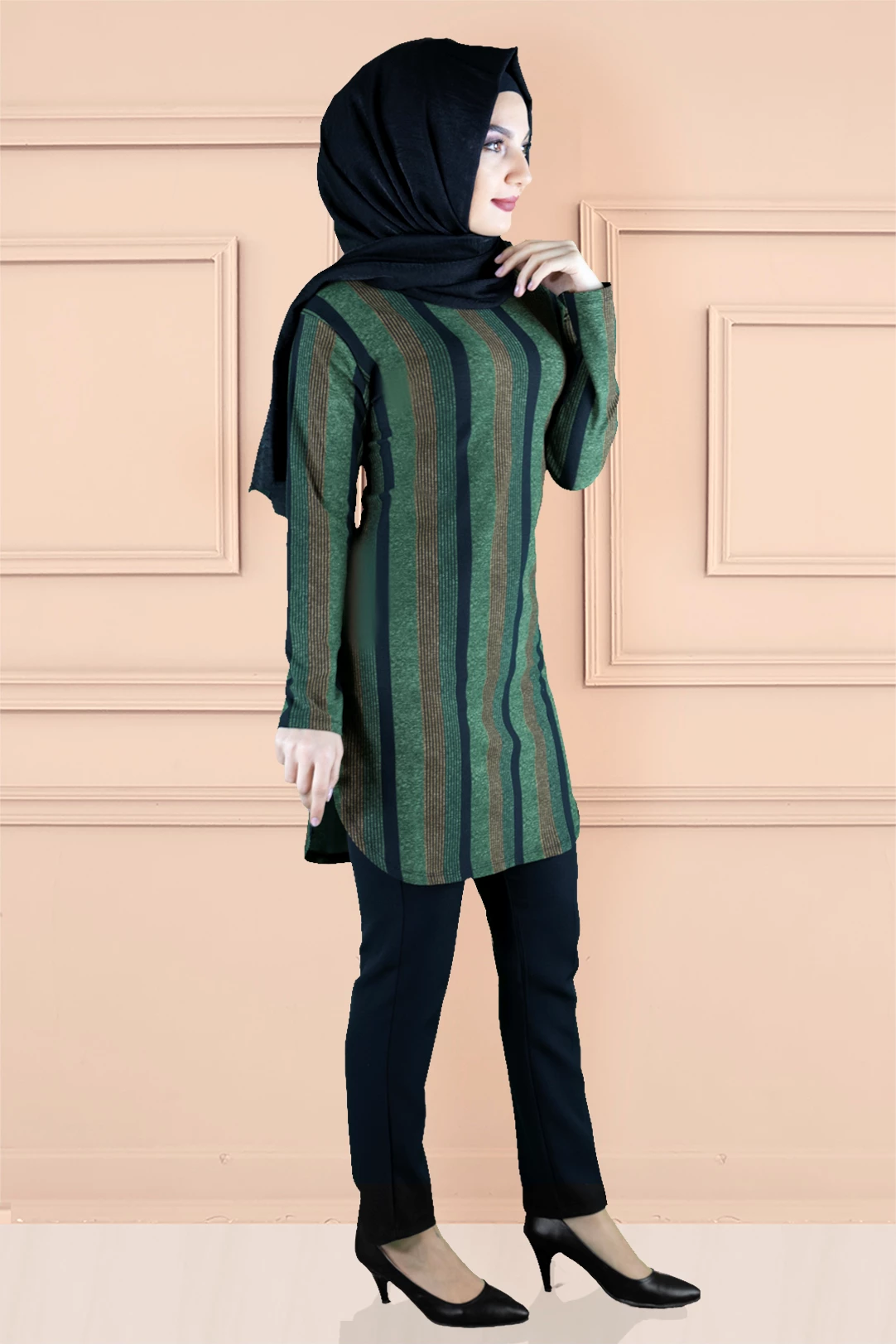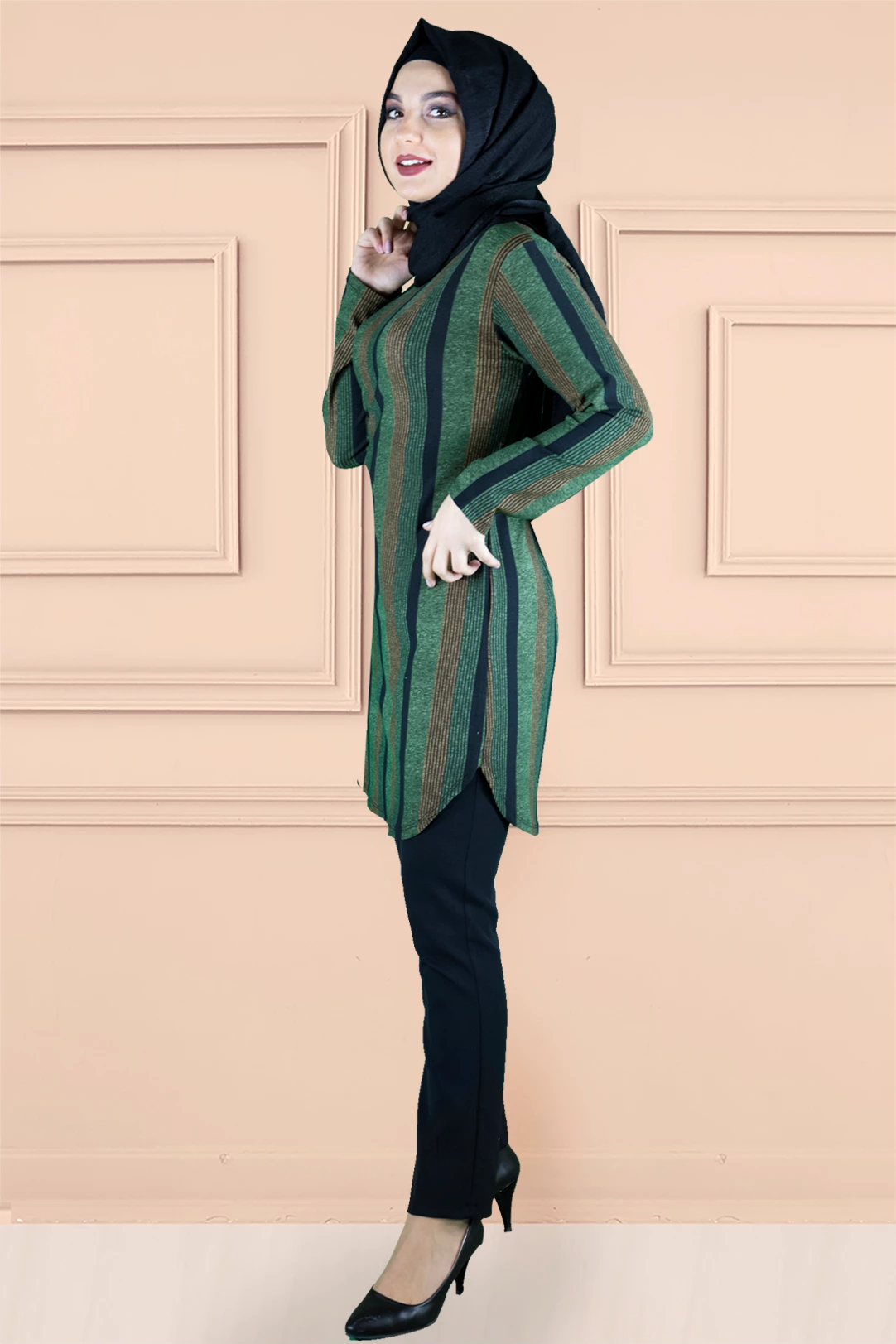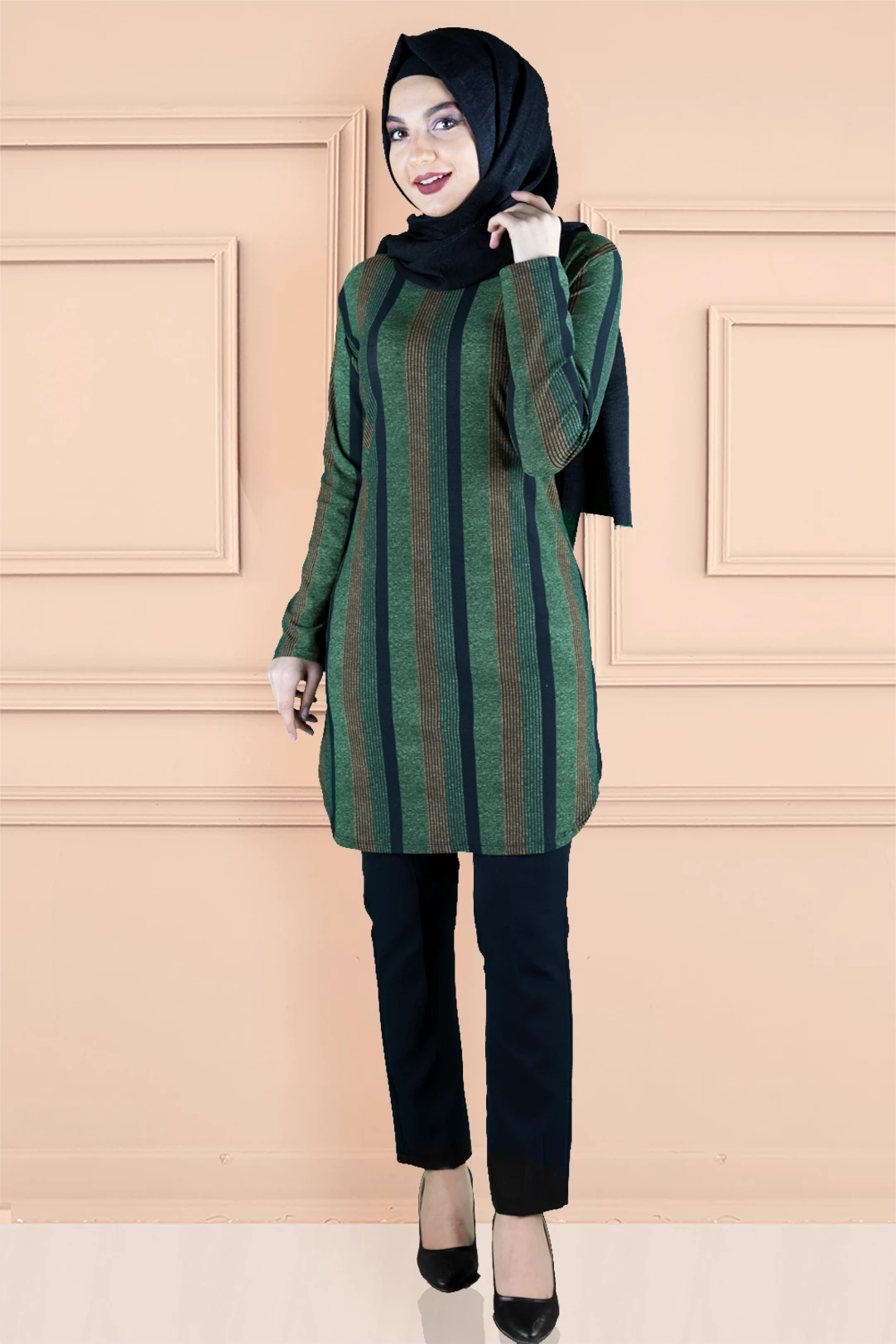 Ürünümüz likralı elastik desenli empirme baskılı tunik baskısı özel olarak imal edilmiştir.Ürün kırışmayan kumaş özelliğiyle tercih sebebidir .Tam kalıp ve astarsızdır.