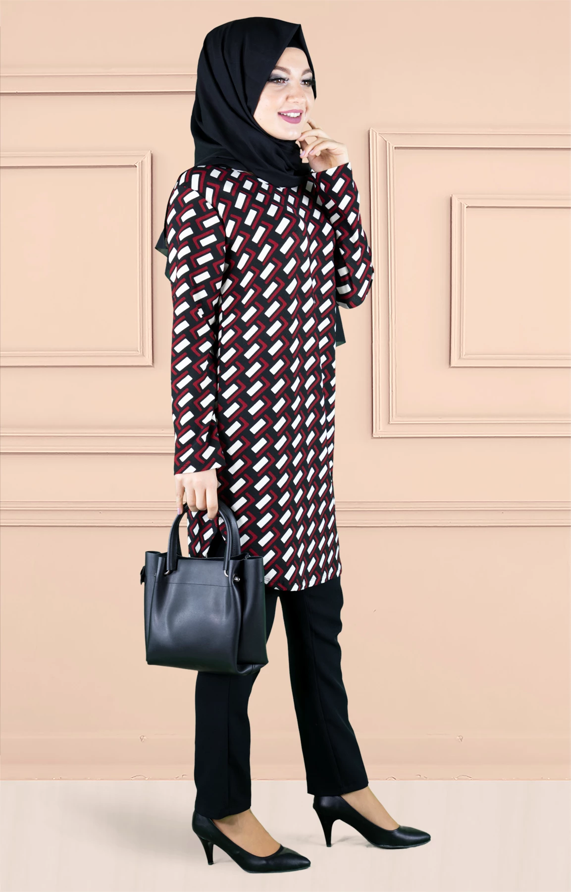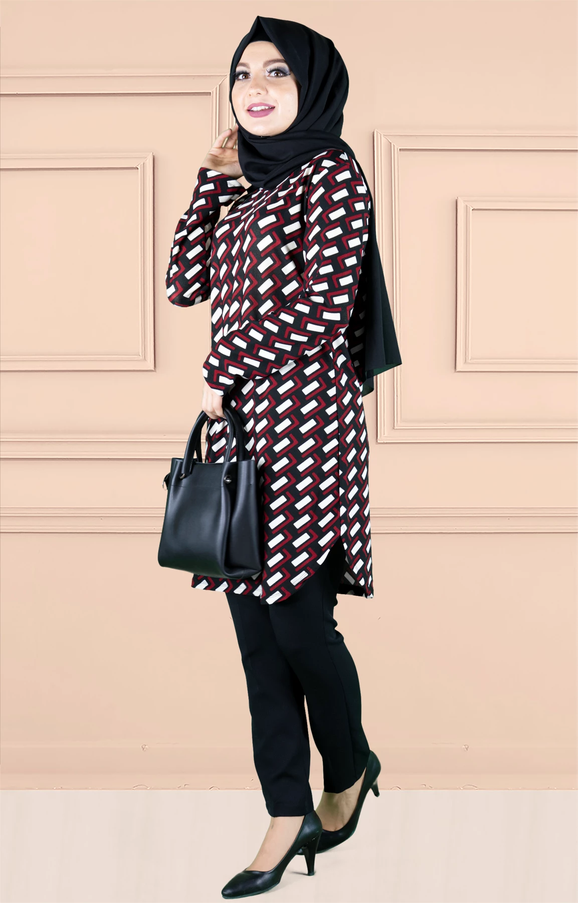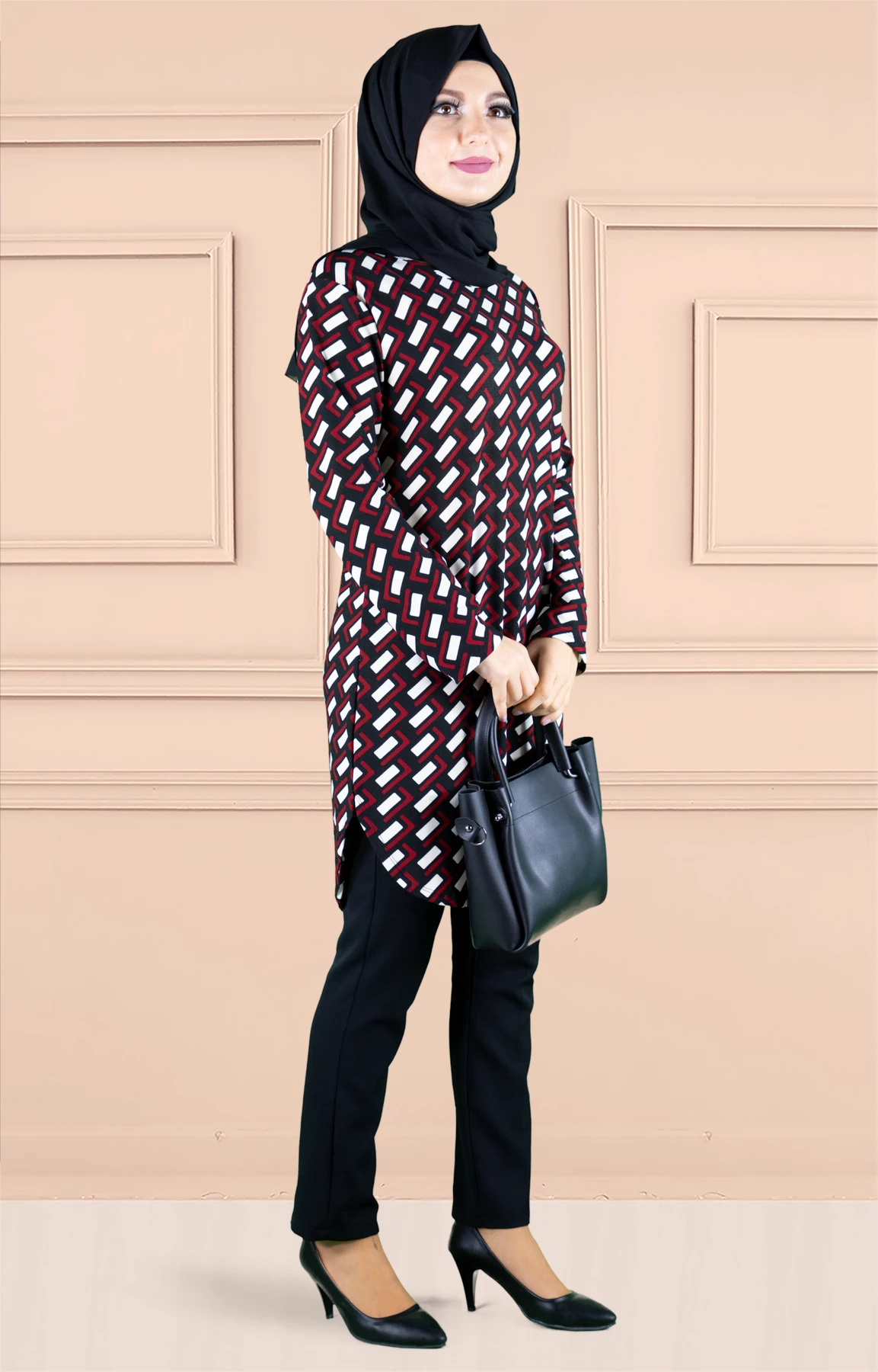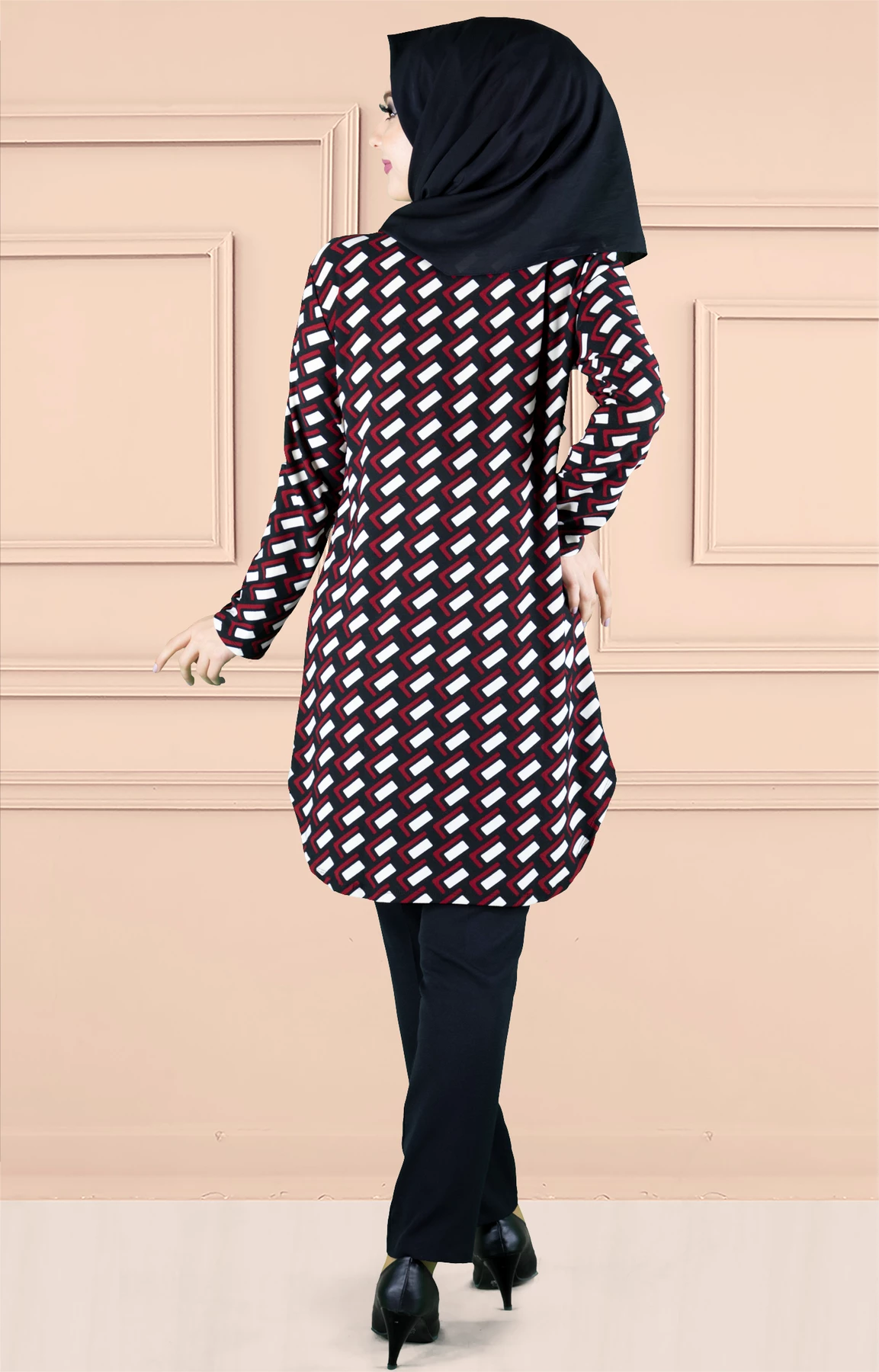 Ürünümüz likralı elastik desenli empirme baskılı tunik baskısı özel olarak imal edilmiştir.Ürün kırışmayan kumaş özelliğiyle tercih sebebidir .Tam kalıp ve astarsızdır.