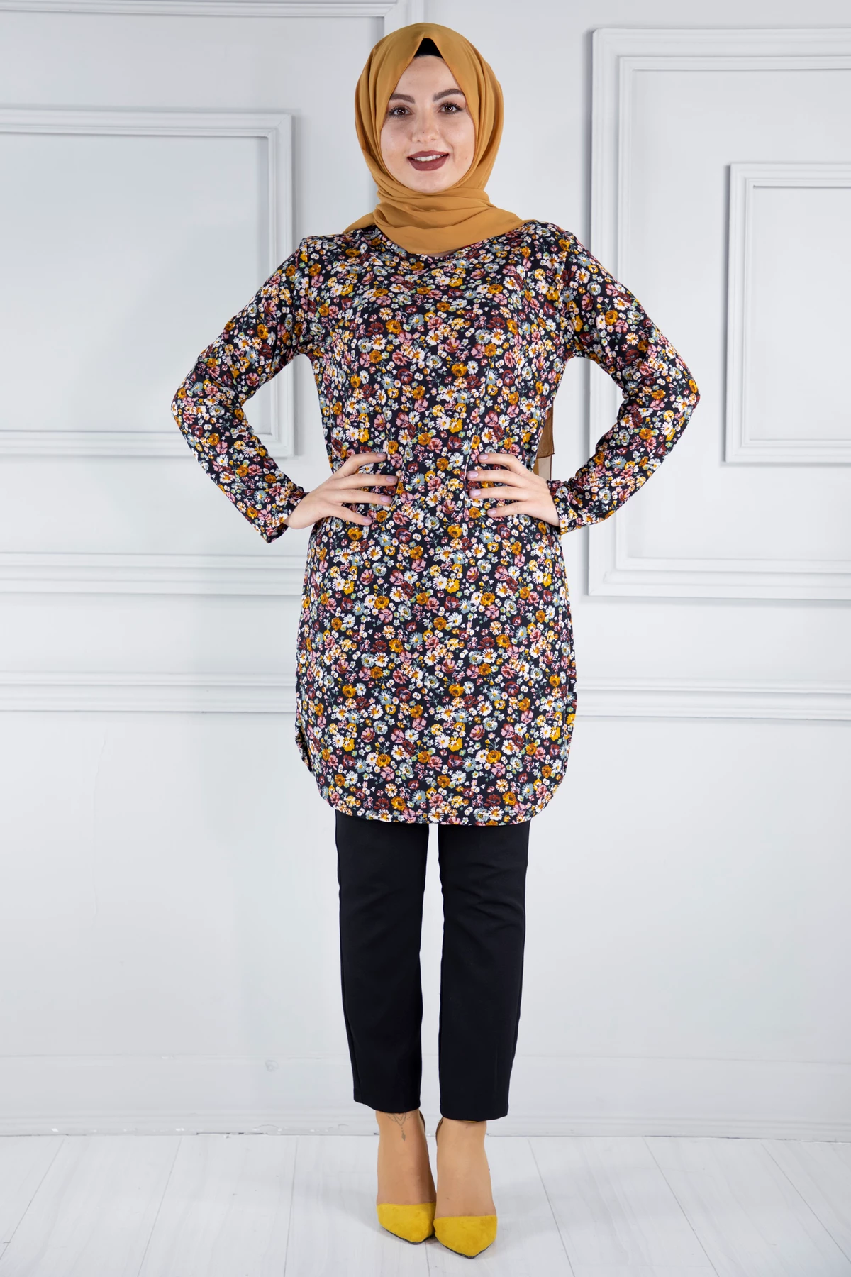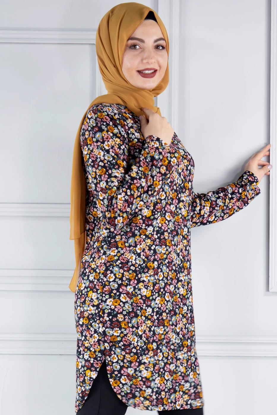 Baskılı Krep Tesettür Tunik C30050-142 5XL