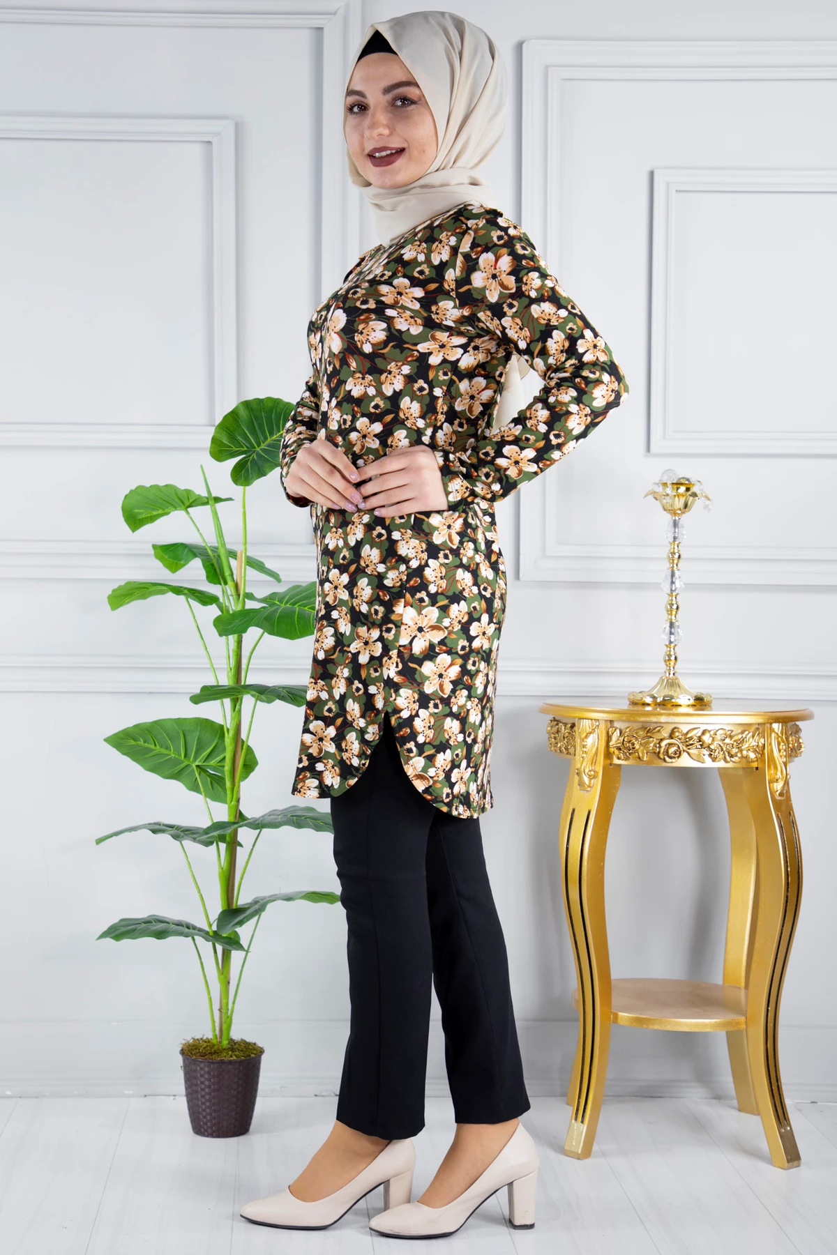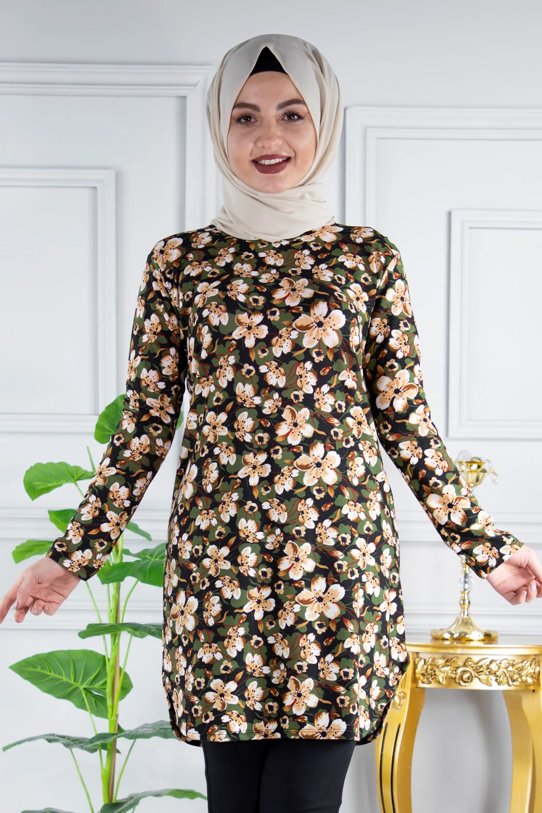 Baskılı Krep Tesettür Tunik C30050-147 5XL